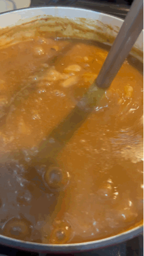12. 카레가 충분히 끓여졌을 때, 믹서기를 이용해서 갈아주시면 됩니다.