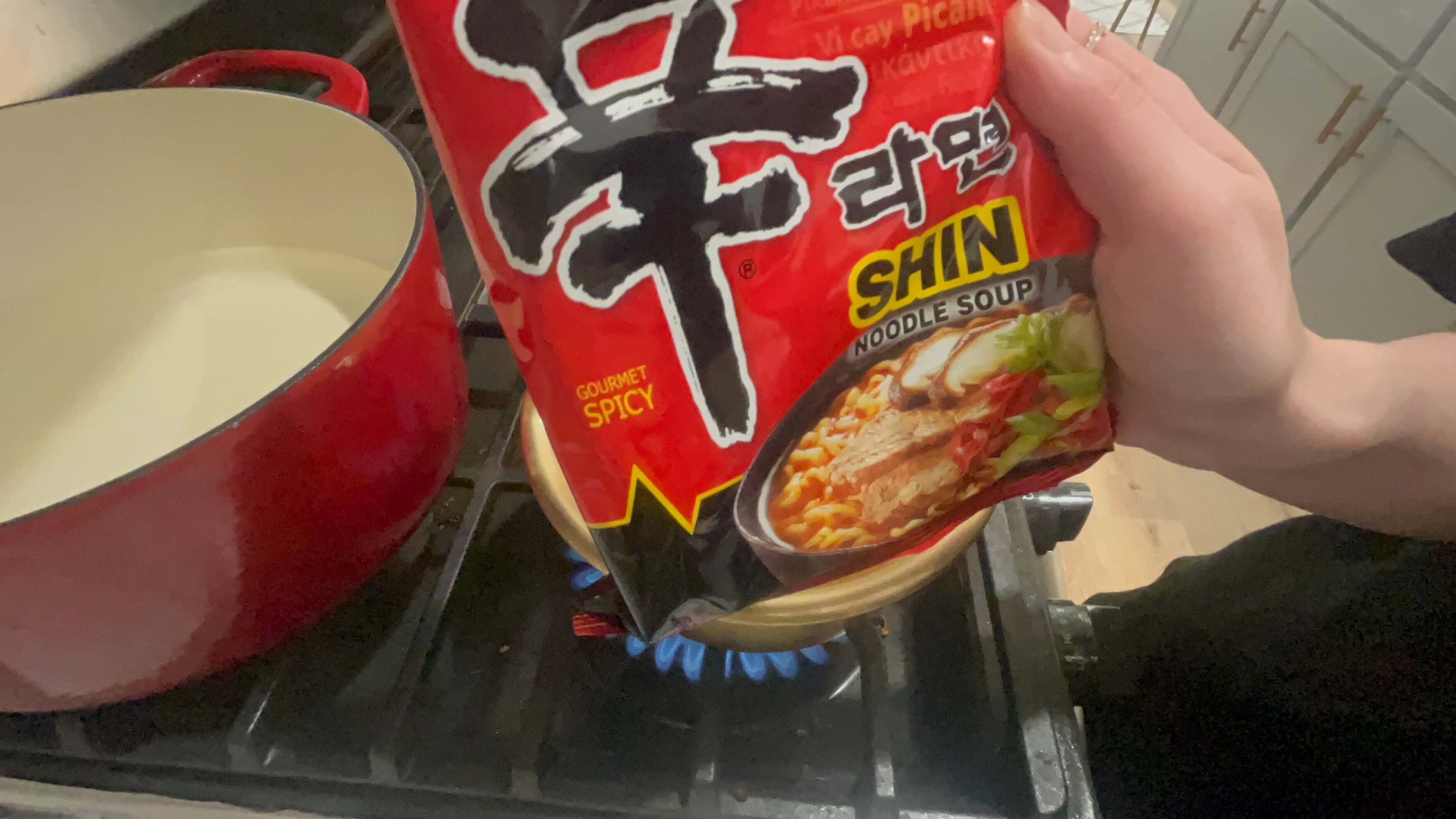3. 신라면을 준비해 주시고, 안에 포함된 수프와 건더기를 넣어줍니다.
