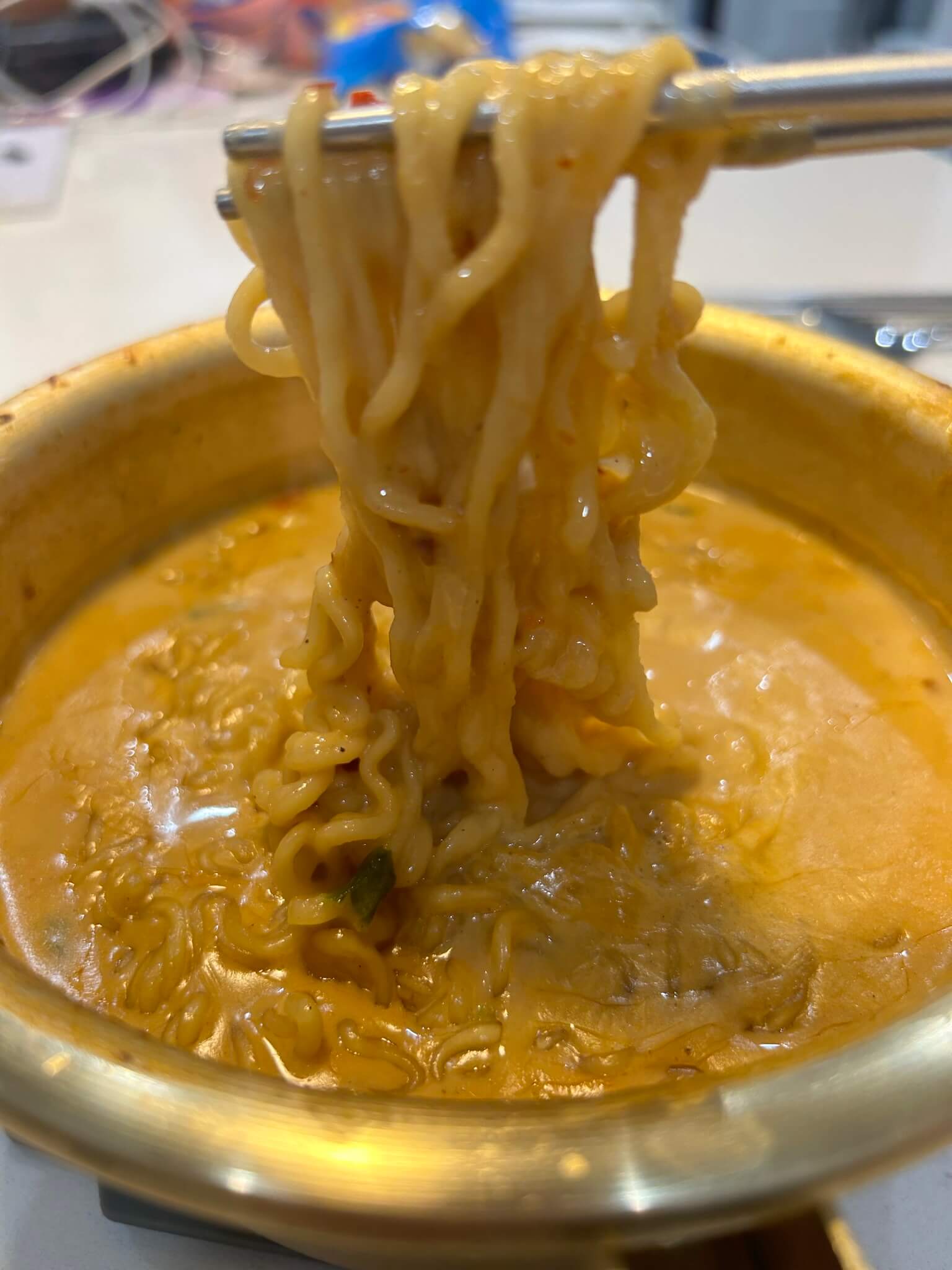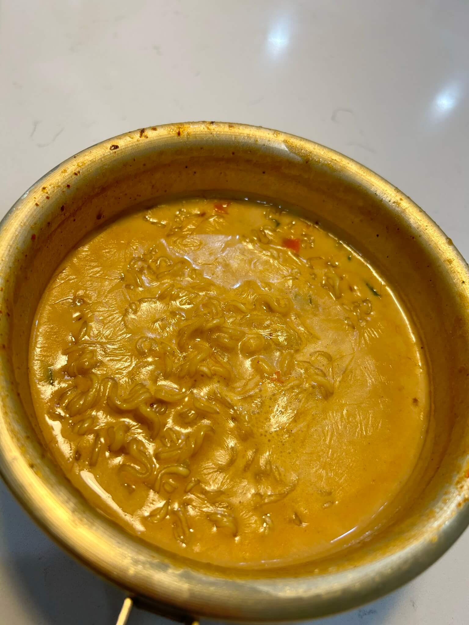 완성된 크림카레라면은 국물은 걸쭉하고 크림이 들어가 부드럽습니다. 면은 탱클탱클하고 쫄깃해서 맛있습니다.