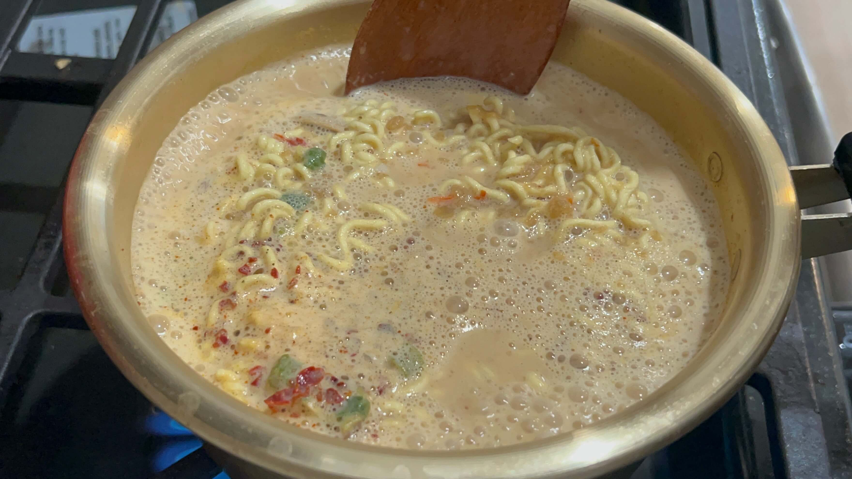 생크림이 들어간거기 때문에 끓이실 때 흘러 넘칠 수 있으니 계속 잘 봐주시거나 처음에 좀 더 넉넉한 냄비를 준비해 주시면 좋습니다.