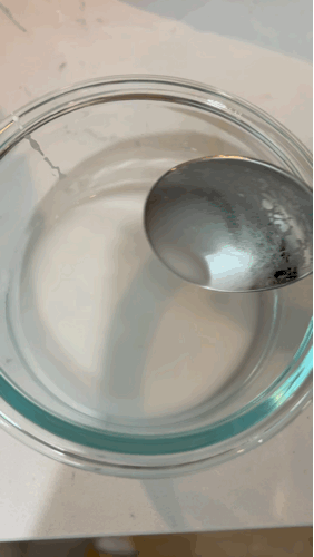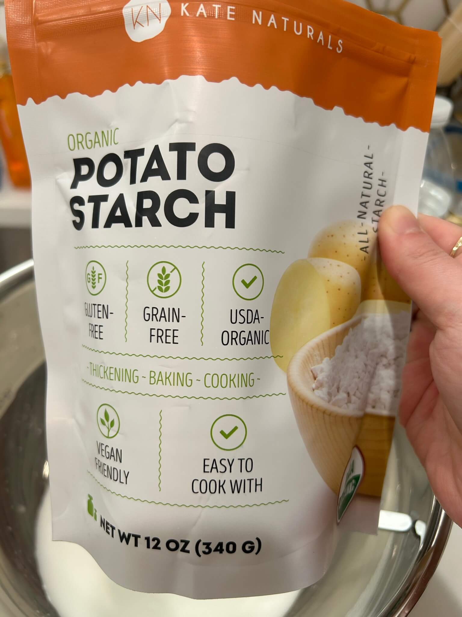 3. 감자전분을 물에 풀어줍니다. 그리고 시간이 지나면 (10분 정도) 층이 분리되는데 물을 제거해 줍니다.