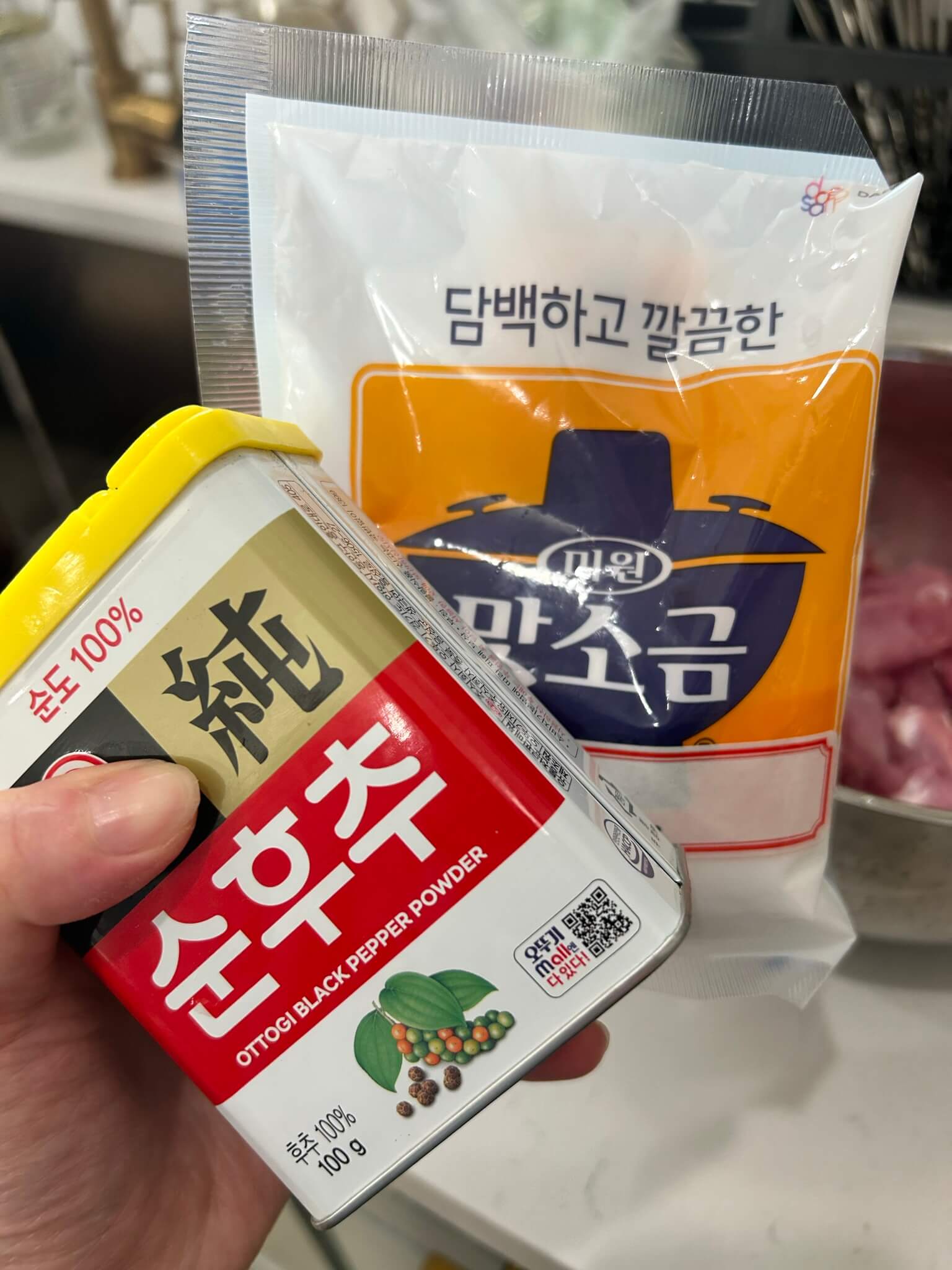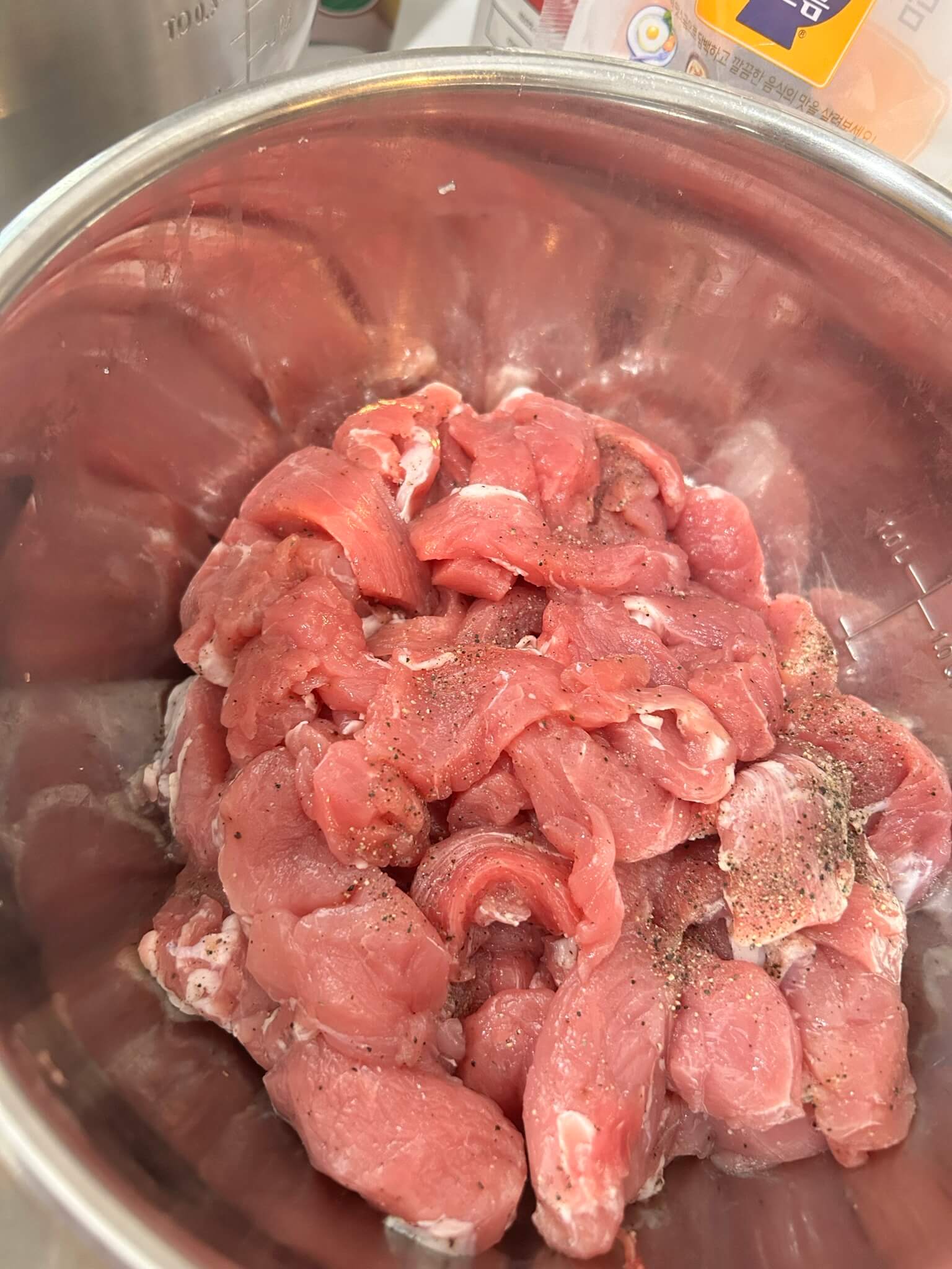 2. 소금과 후추로 고기에 간을 해 줍니다.