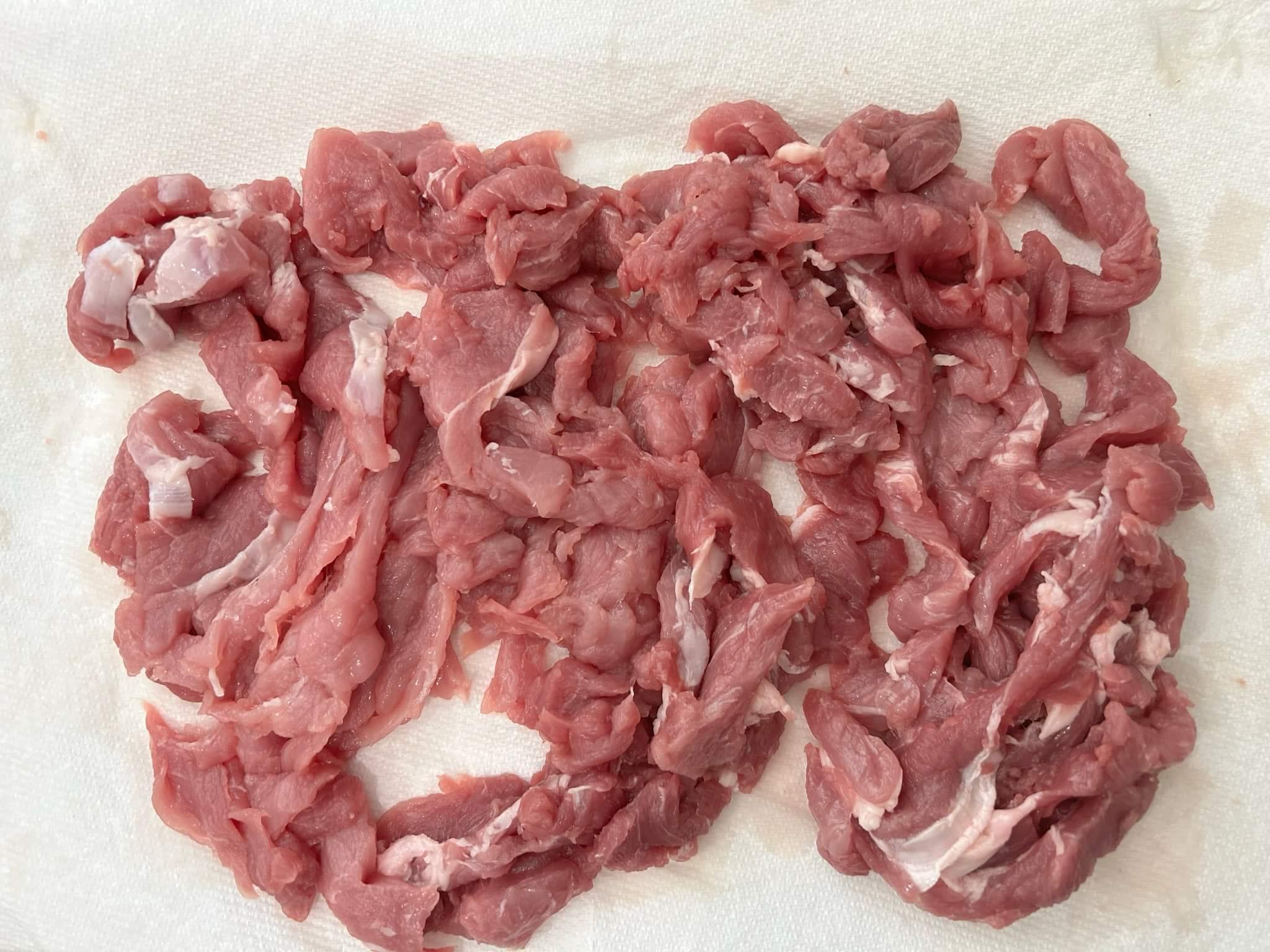 1. 고기를 적당하게 썰어 키친타월에 핏물을 제거합니다.