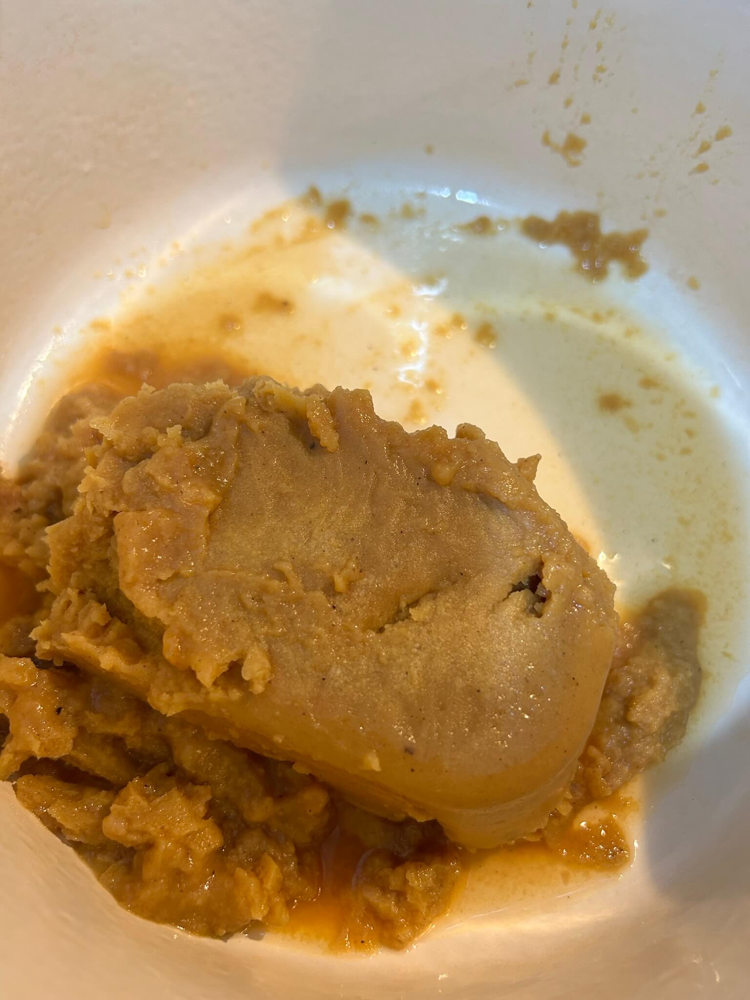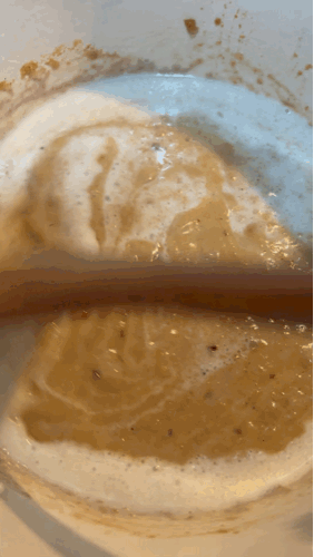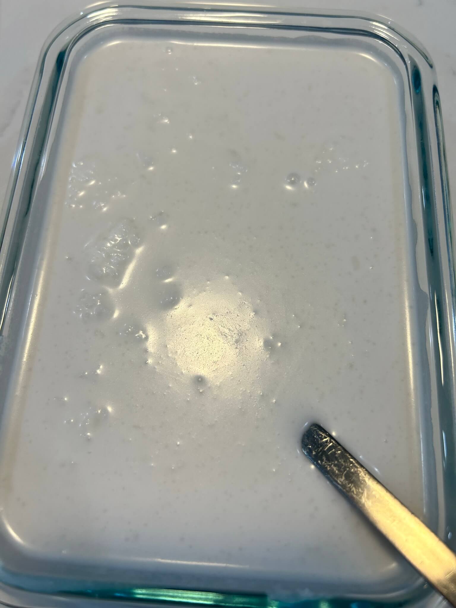 4. 코코넛밀크를 그릇으로 옮겨 덩어리들을 잘 풀어줍니다.