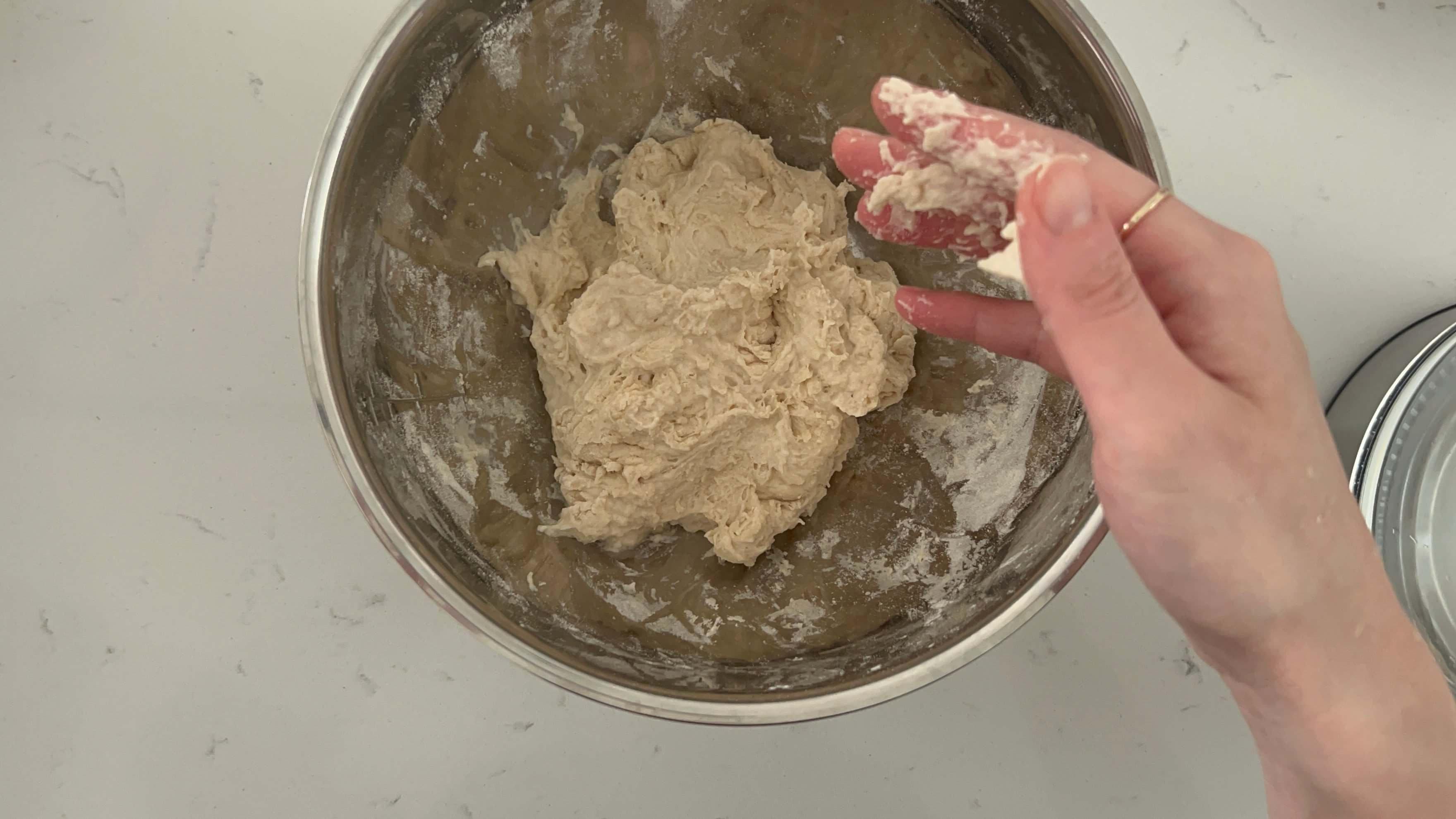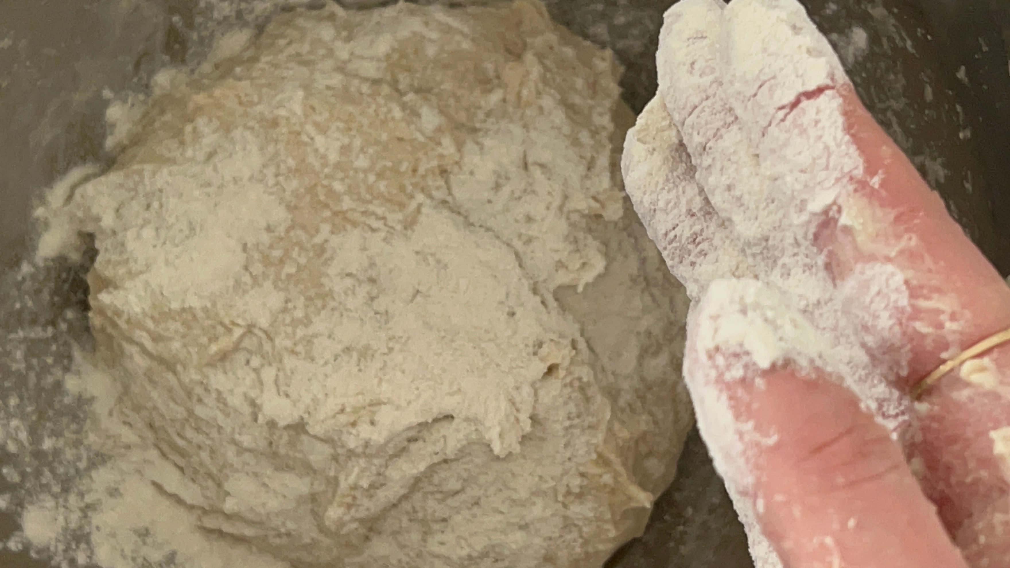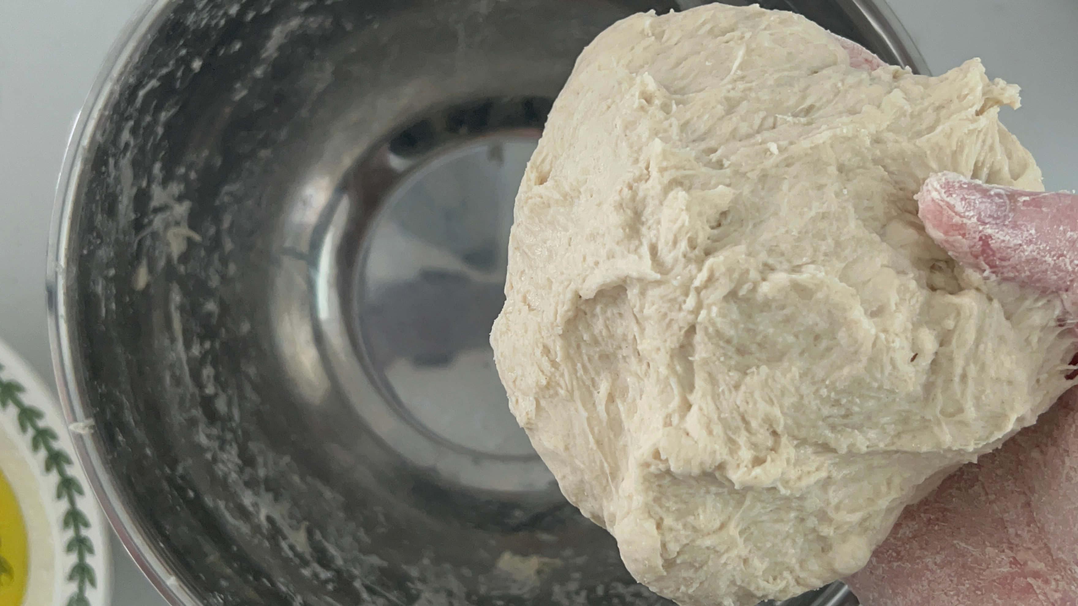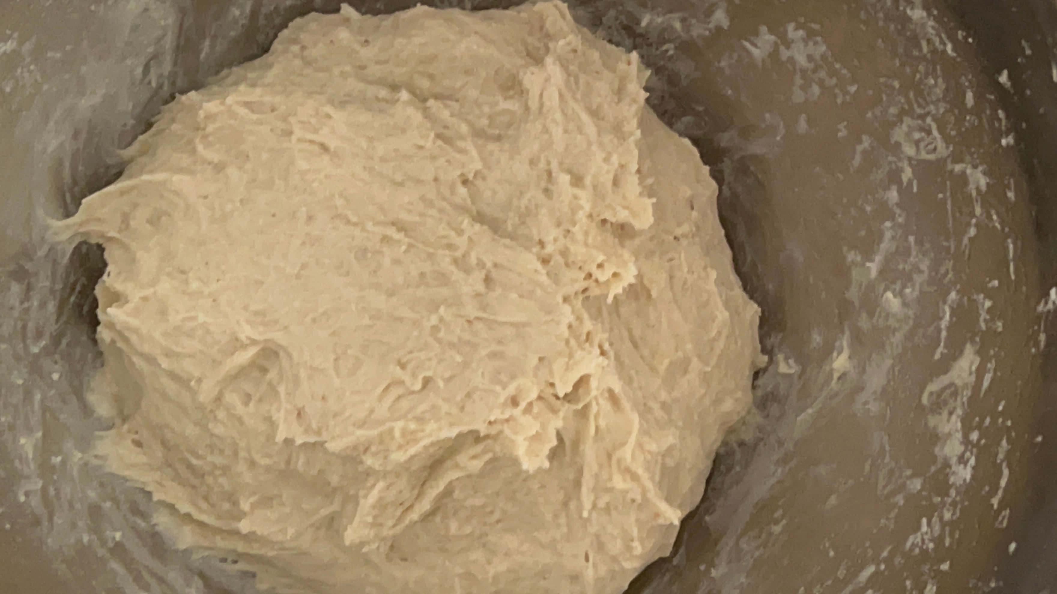 볼에서 떨어진다 하더라도 반죽이 굉장히 촉촉하고 찐득한 느낌은 여전합니다.