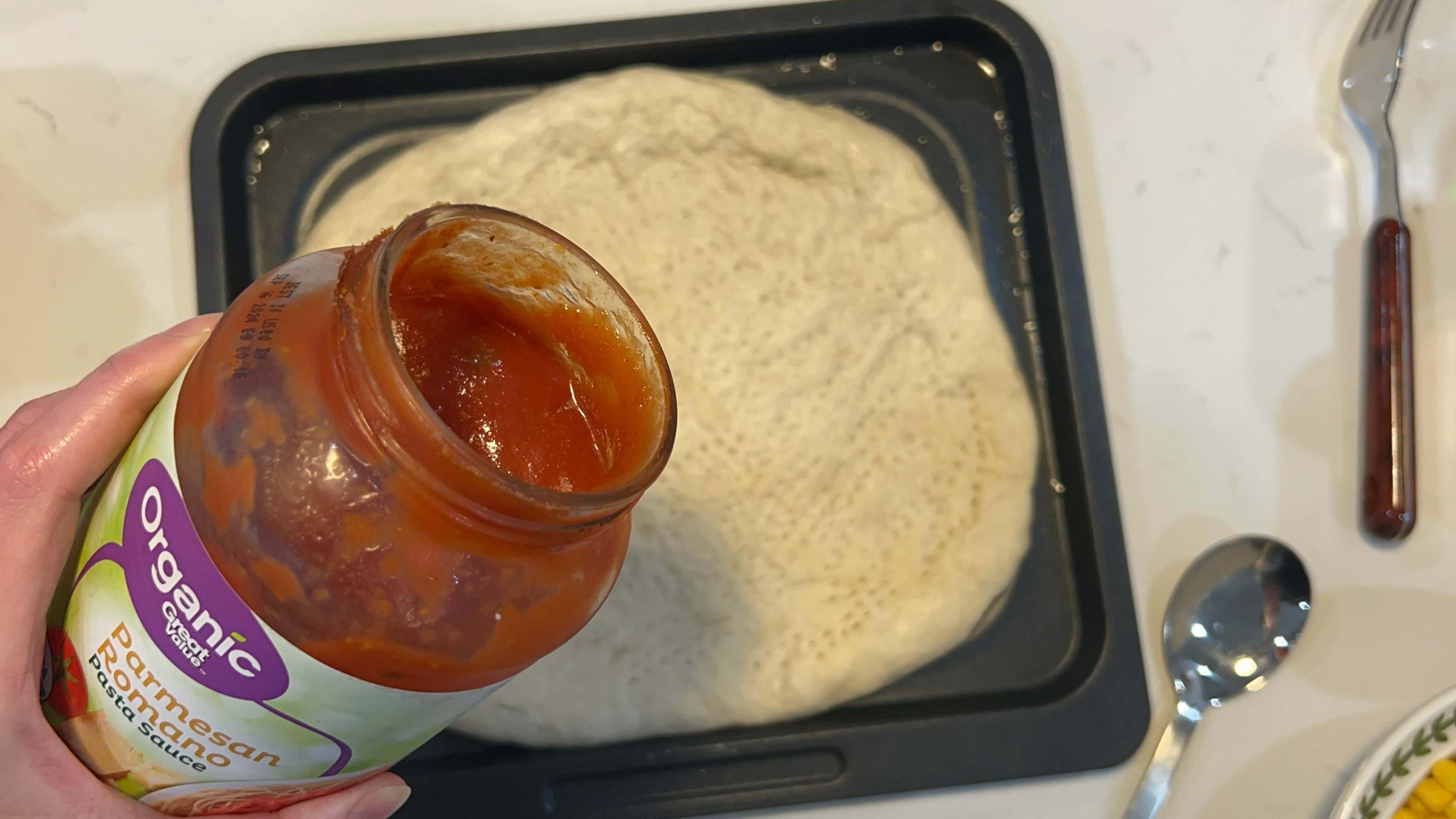 14. 토마토소스를 발라줍니다.