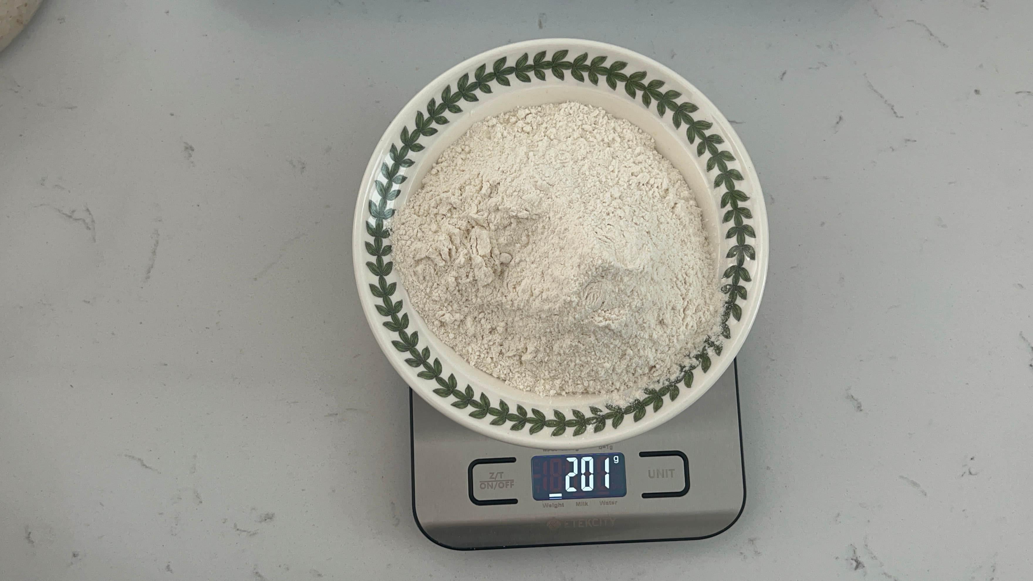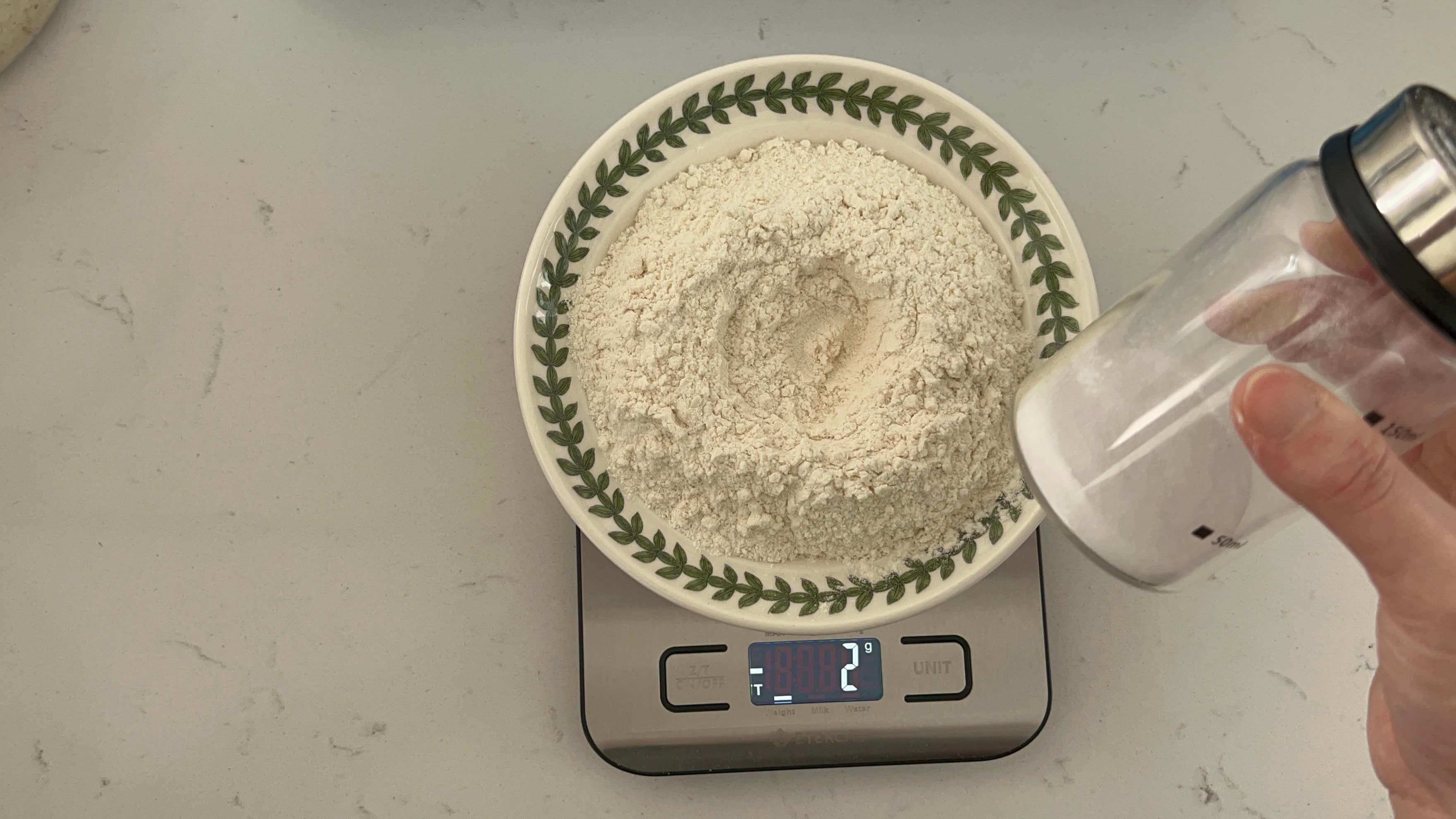 4. 밀가루 200에 소금 2g을 넣어 준비합니다.