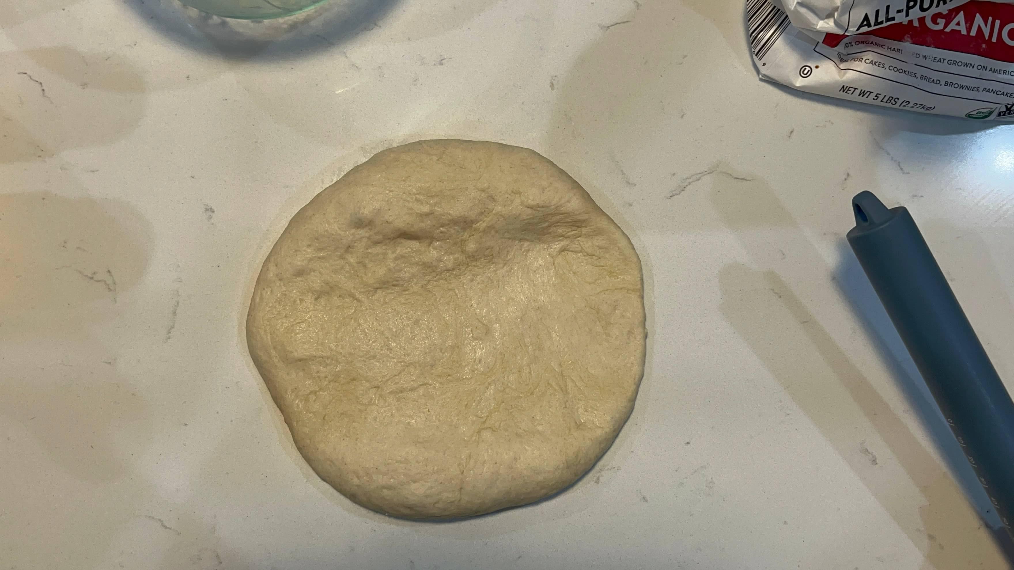 8. 어느 정도 오일이 다 스며든 거 같으면 이때 밀가루를 조금 더 뿌려서 한 번 더 반죽해 줍니다.