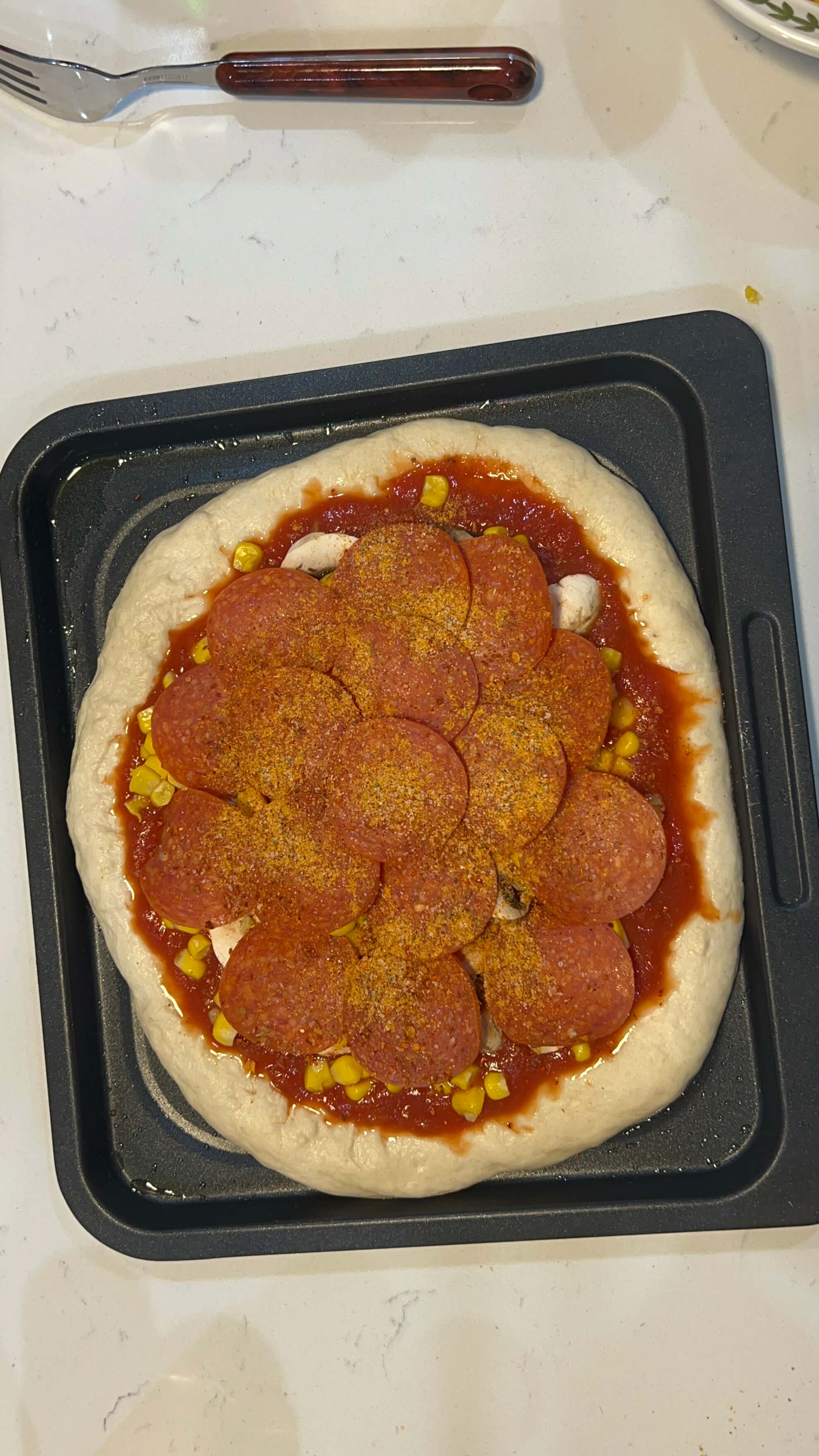 17. 페퍼로니를 이쁘게 올려줍니다.
