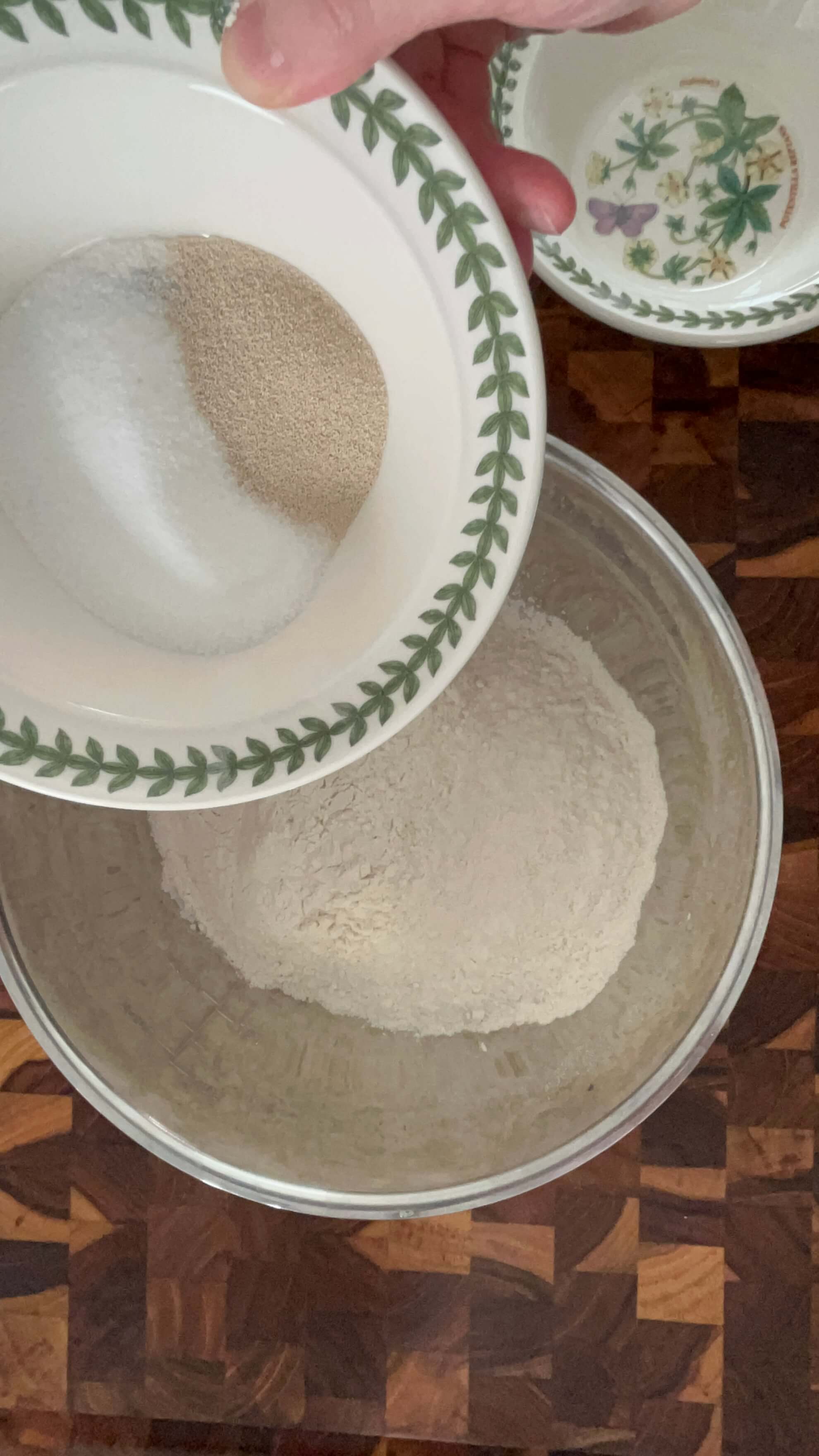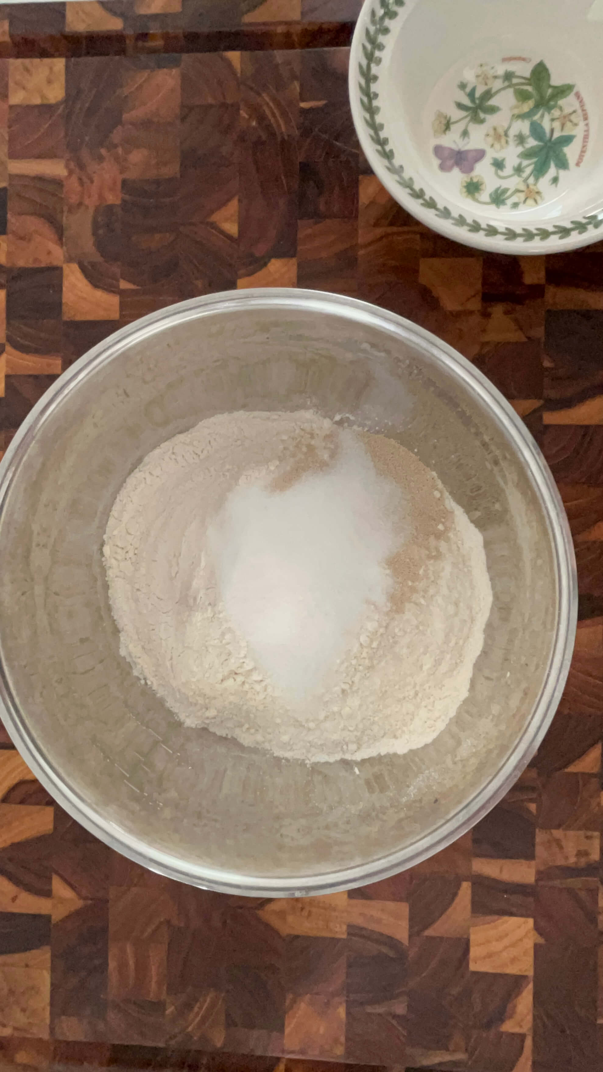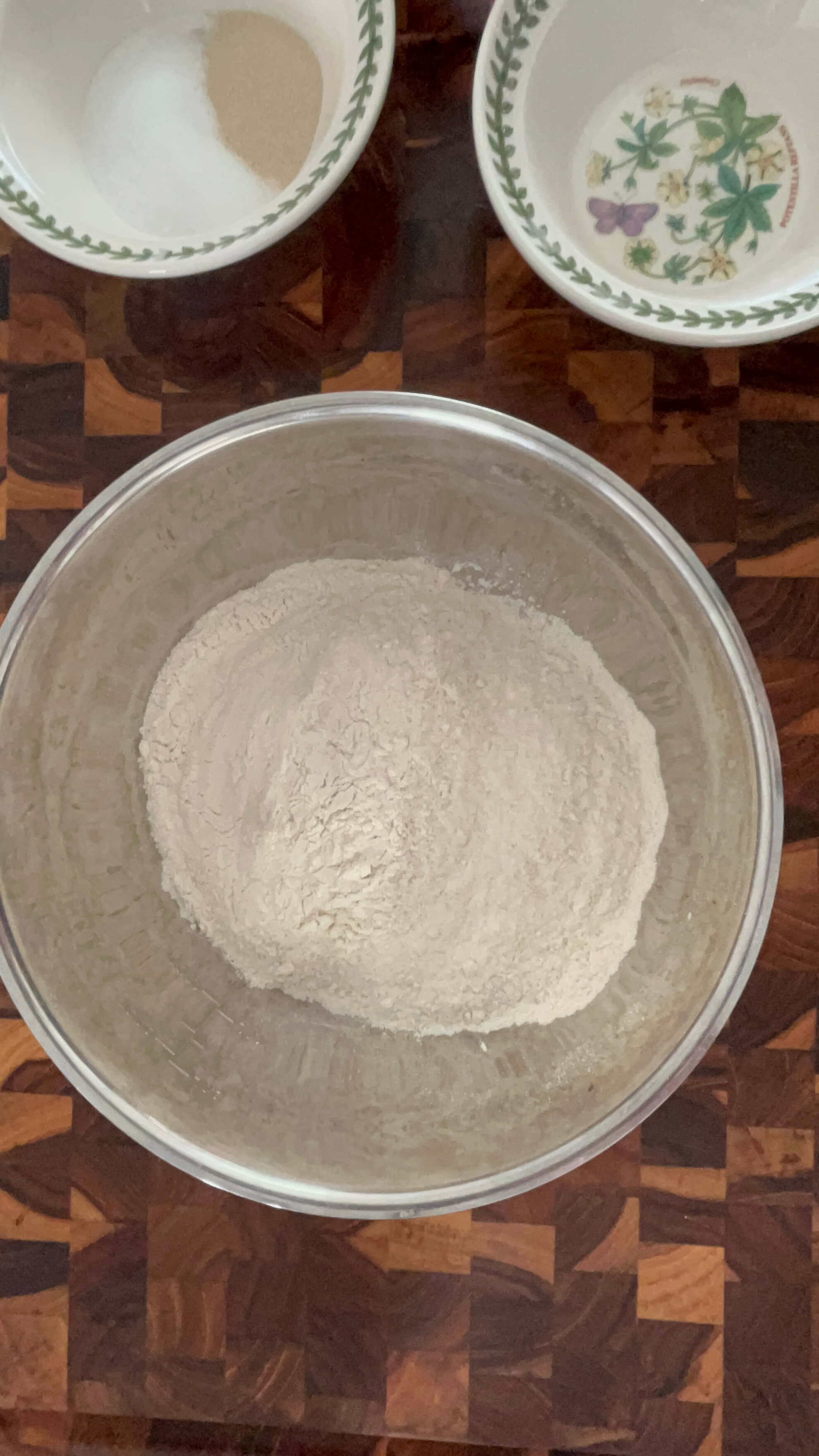 2. 볼에 밀가루, 소금, 설탕, 이스트를 넣어줍니다.