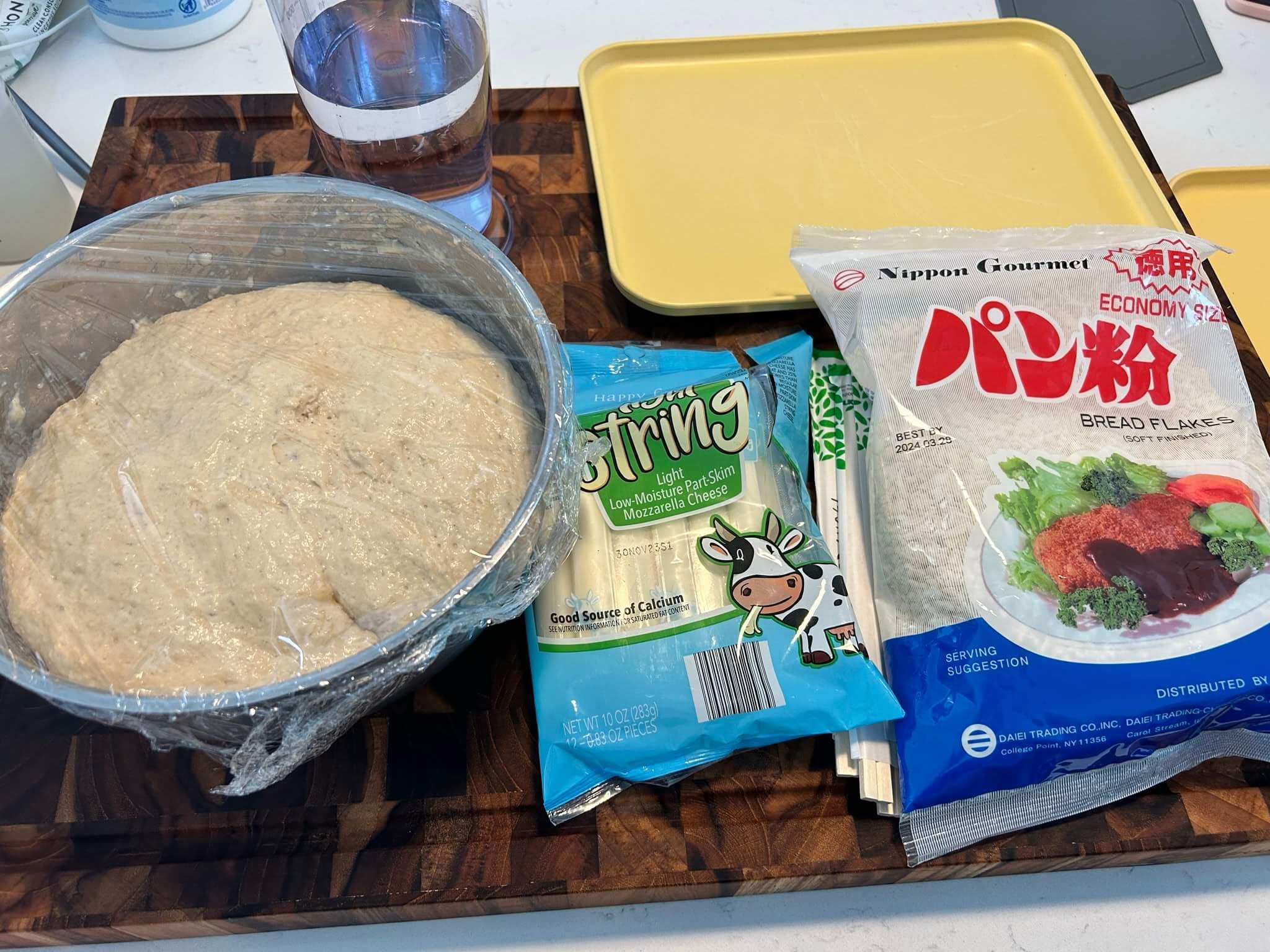 6. 발효가 다되어가면 치즈 혹은 소시지를 준비합니다.
