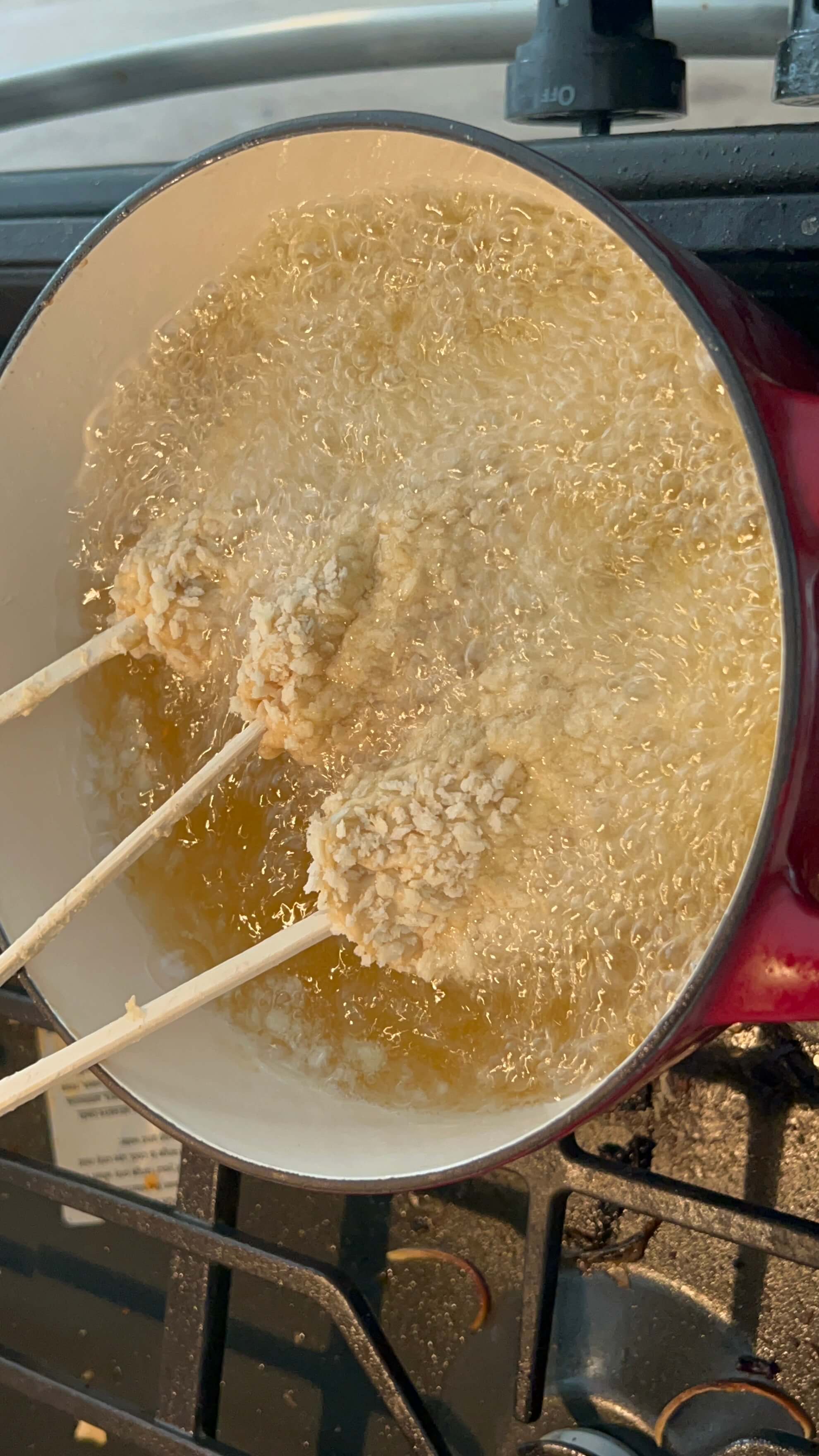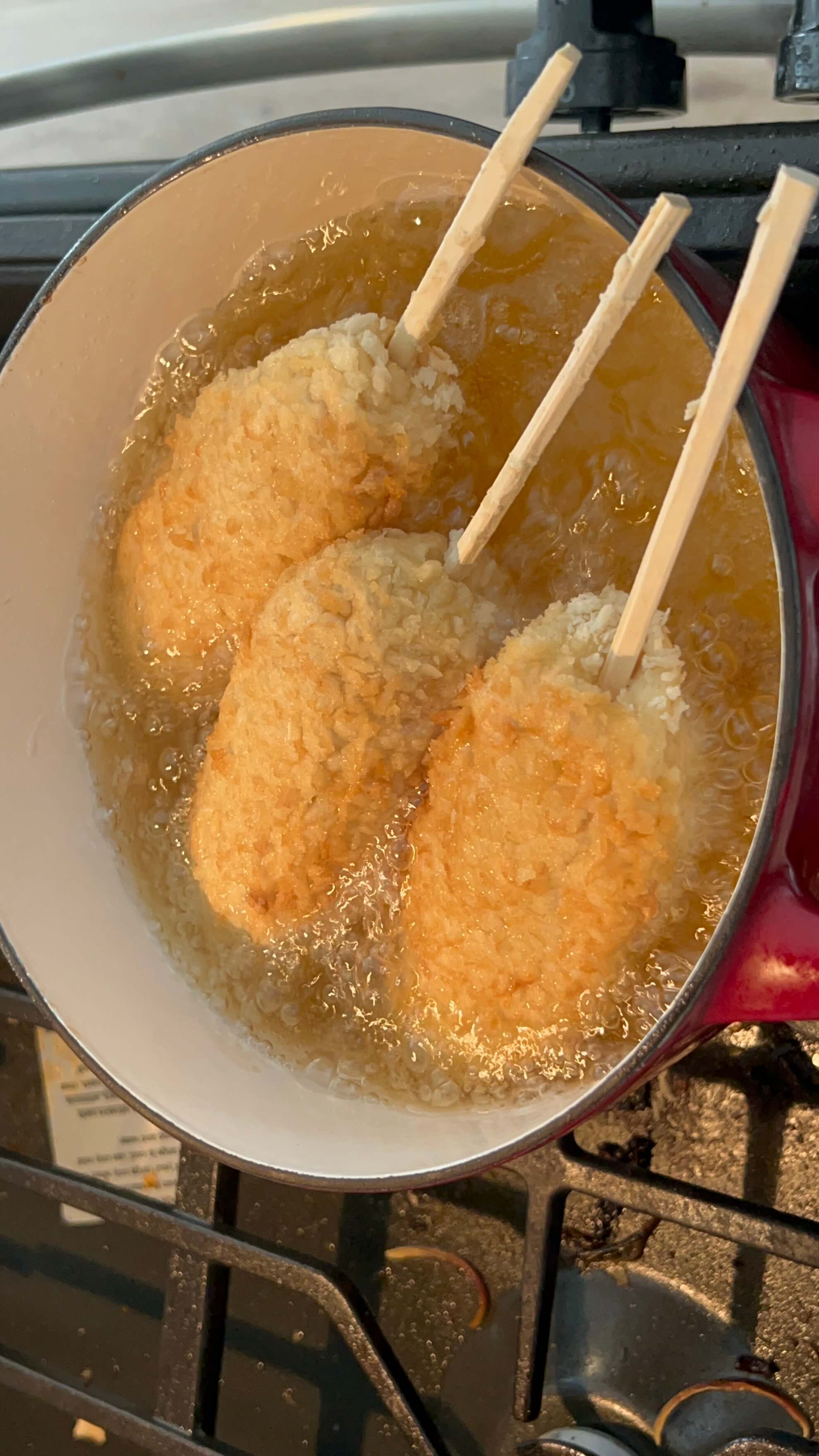 12. 기름에 튀겨준 핫도그는 체에 밭쳐 식혀줍니다.