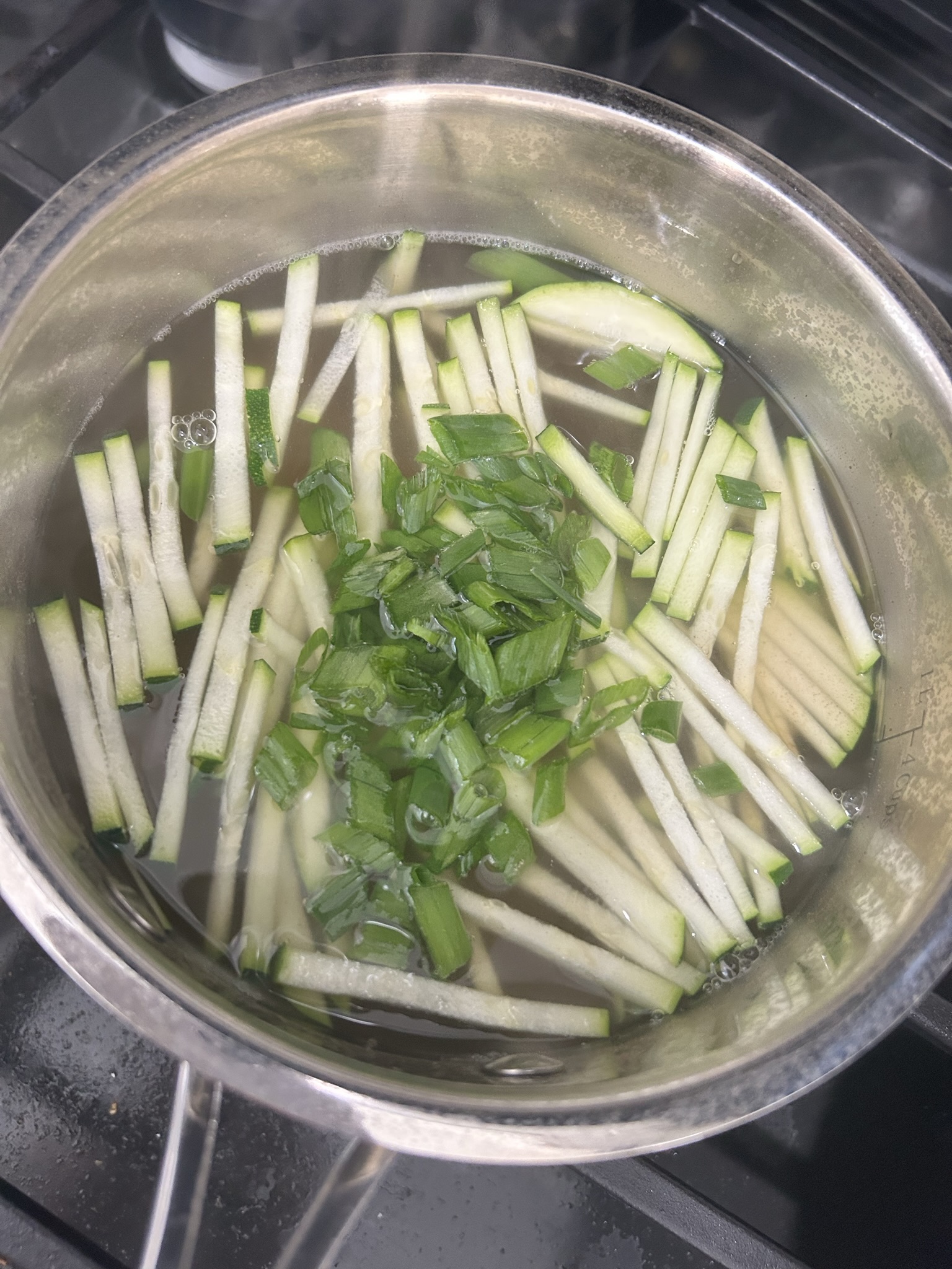 4. 육수에 파와 호박을 넣어 끓여줍니다.