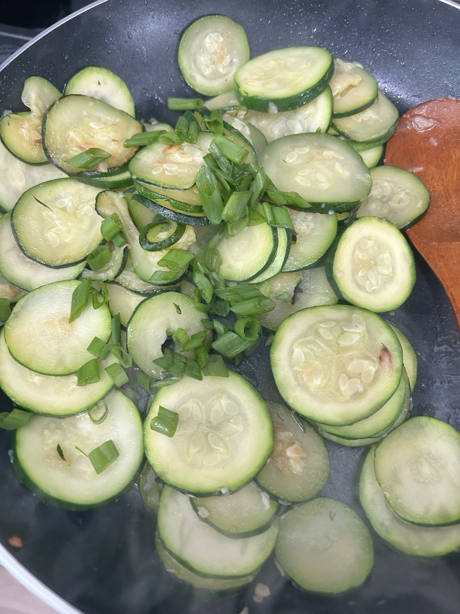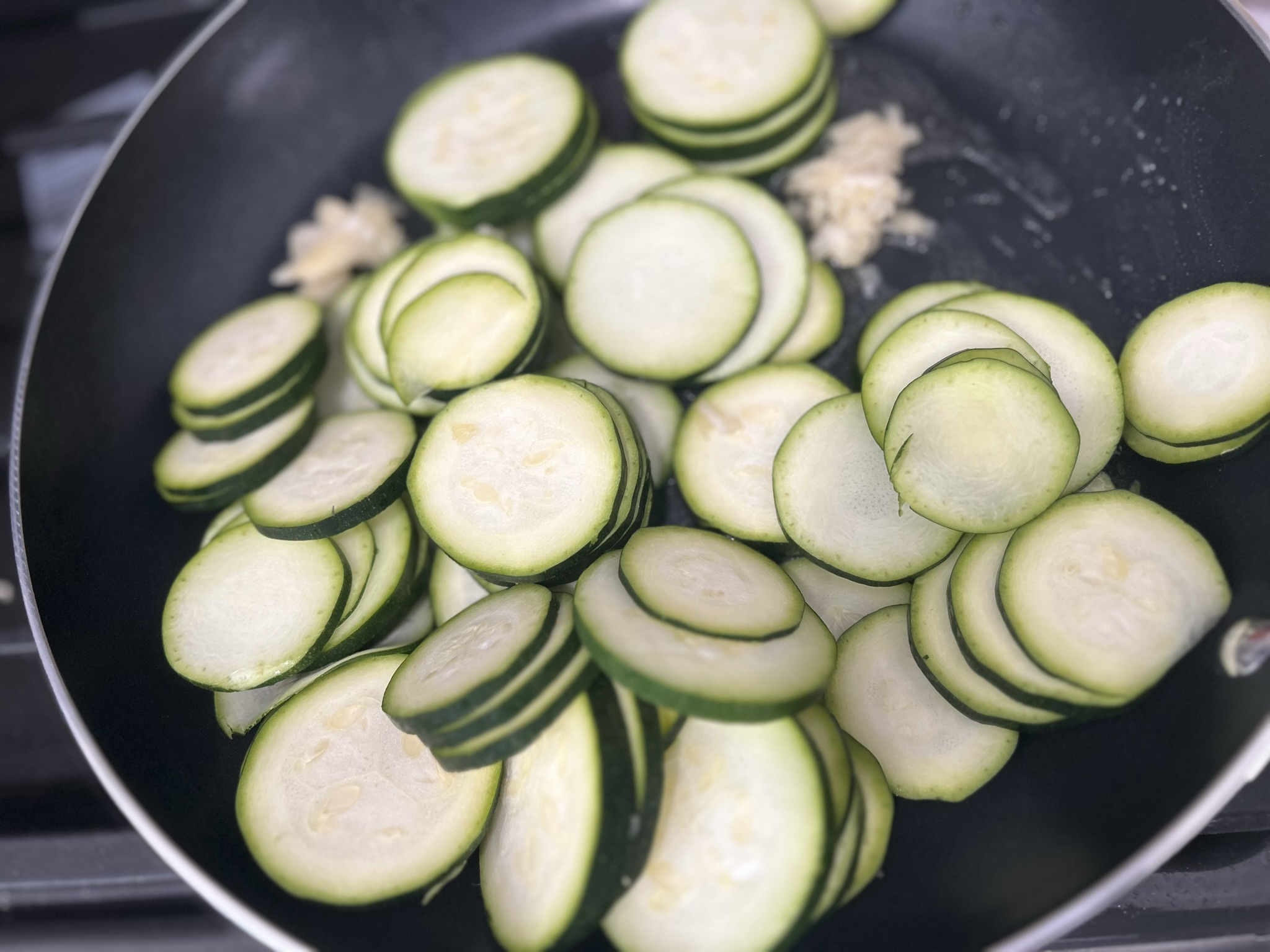 3. 기름에 다진 마늘을 넣고 호박을 넣어줍니다.
