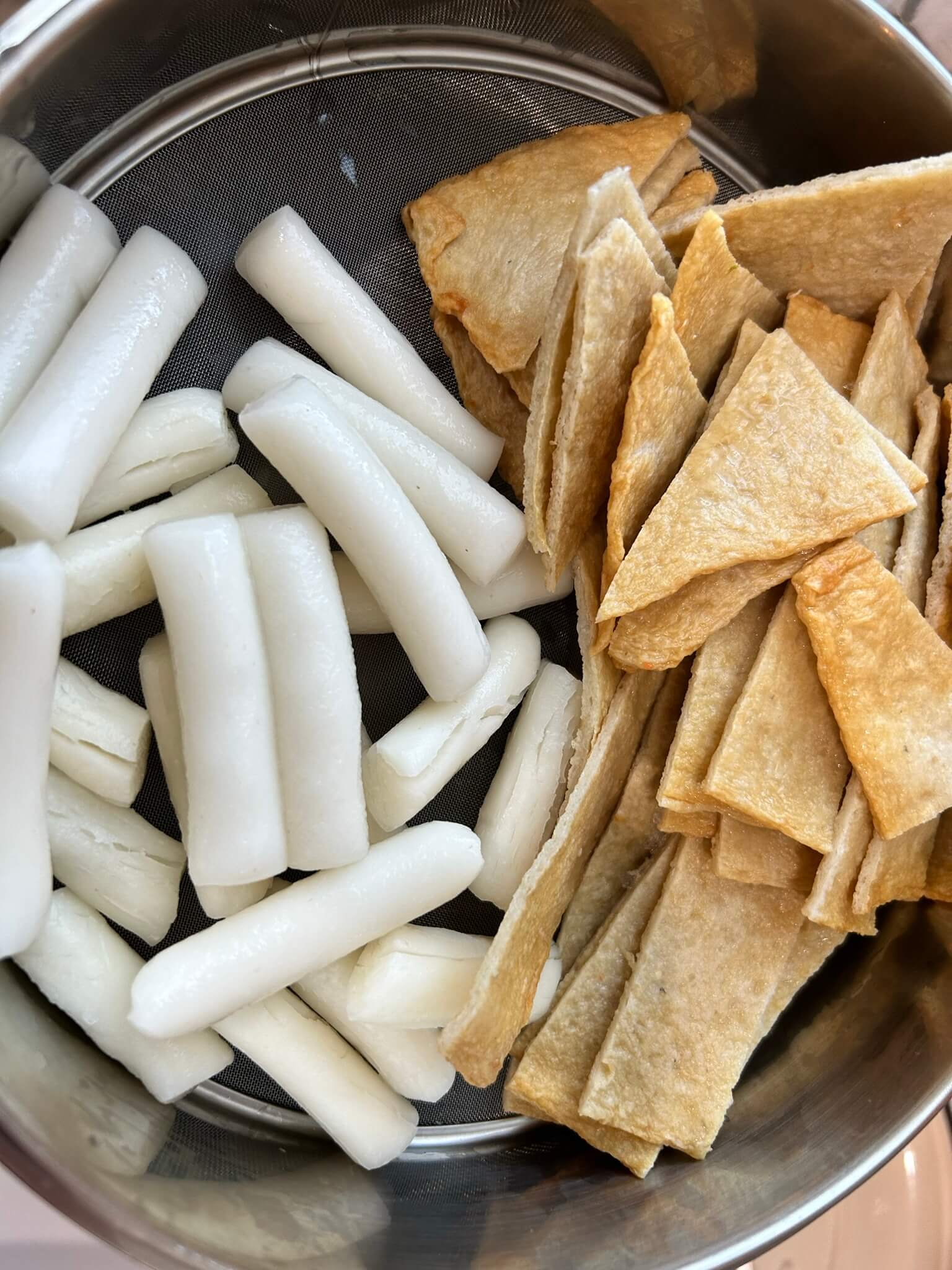 3. 떡볶이와 어묵을 물에 한번 씻어 준비합니다.