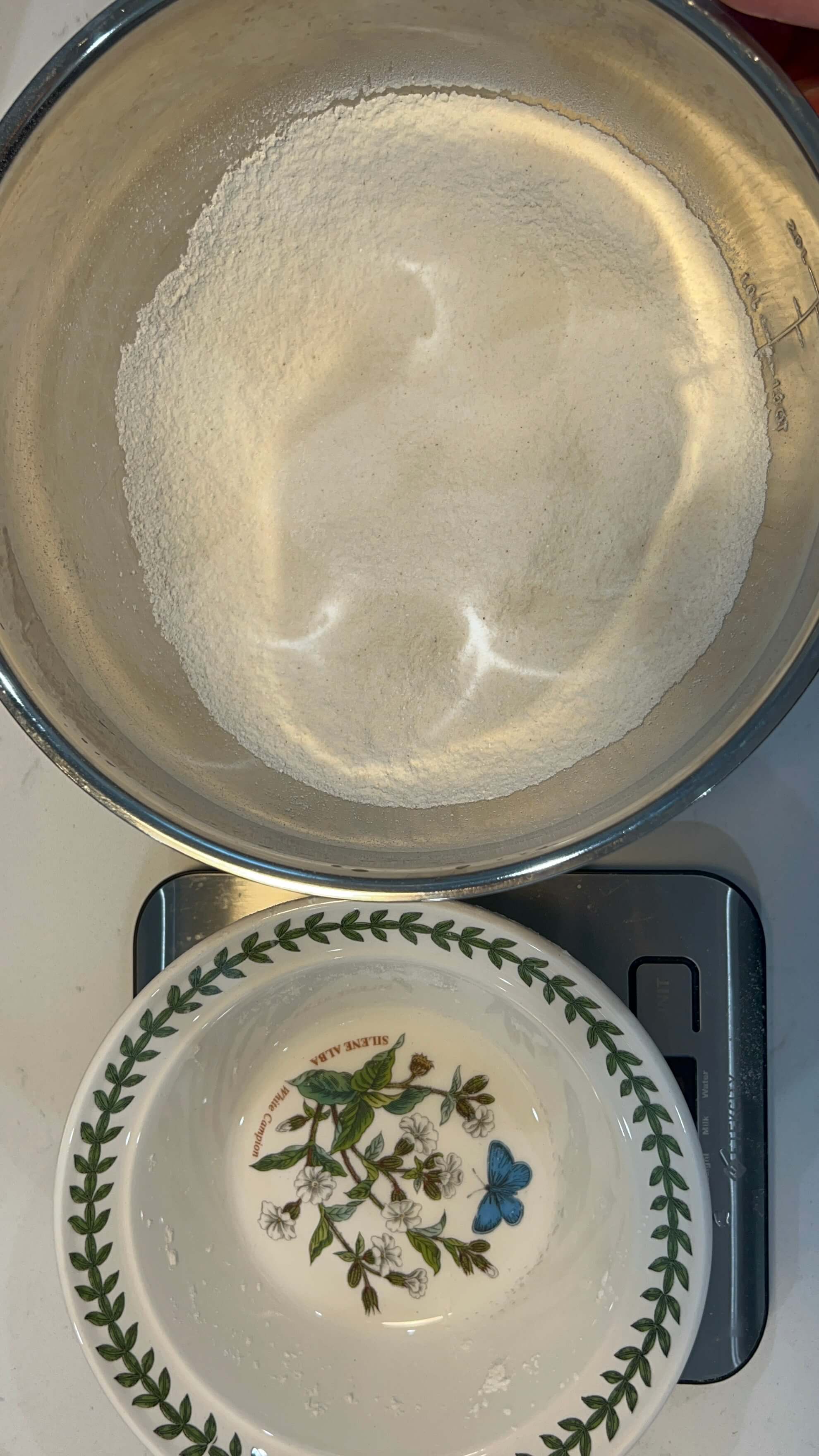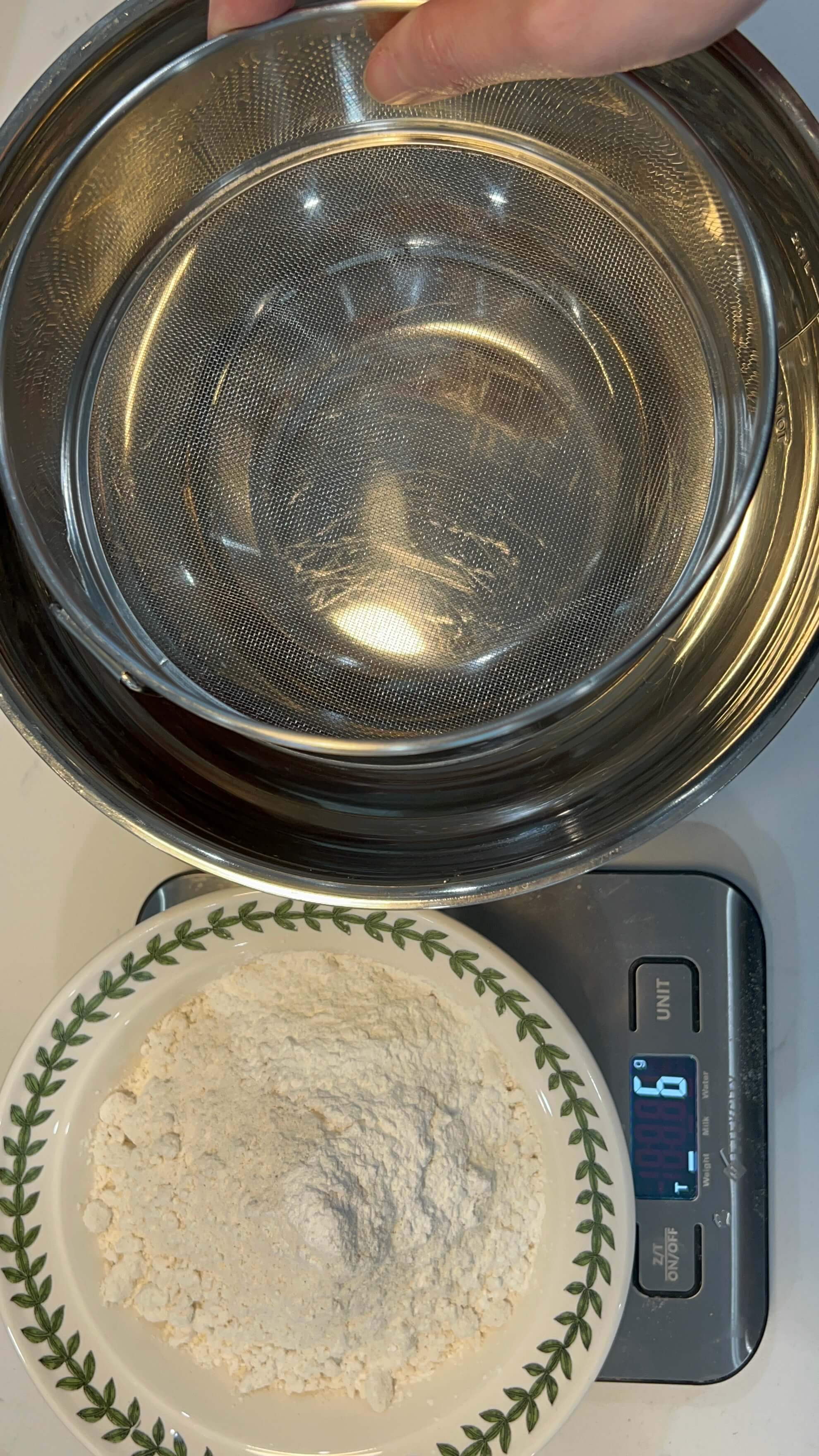 3. 박력분과 베이킹파우더를 체에 쳐서 준비합니다.