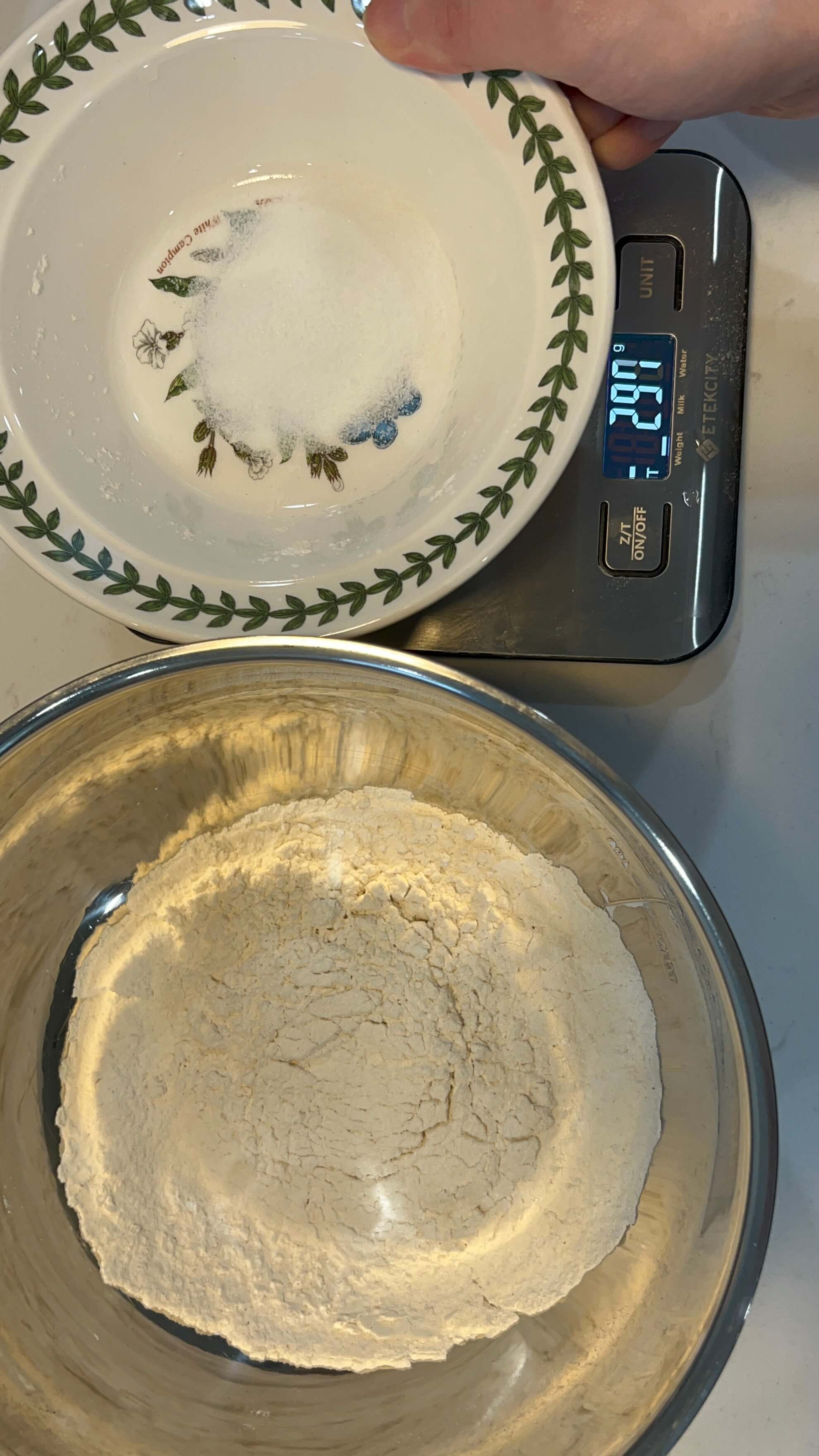 5. 체 친 가루에 소금, 설탕을 넣어줍니다.