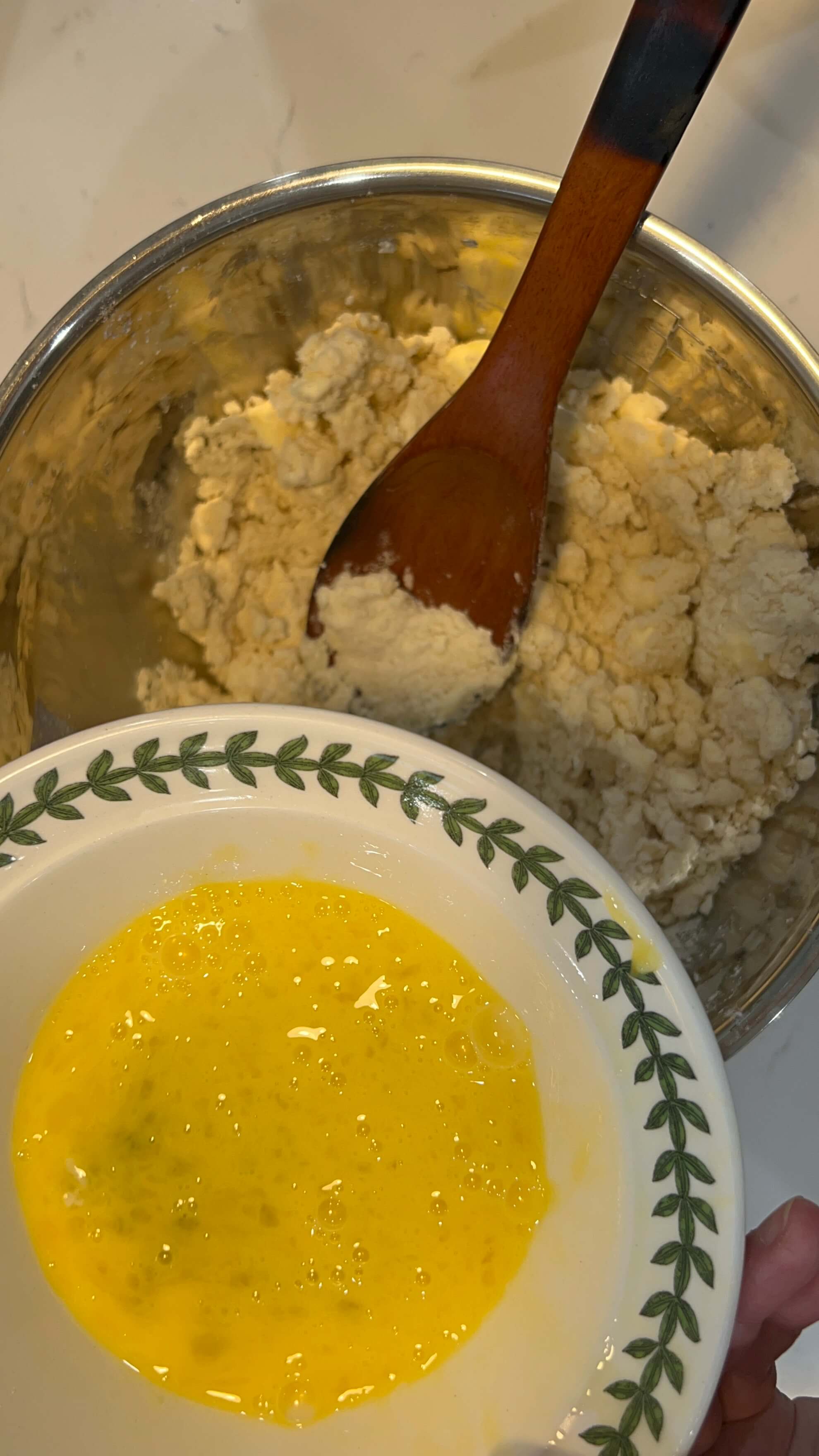 10. 계란을 넣고도 자르듯이 반죽을 해주고 냉장에 30분 이상 휴지시켜줍니다.