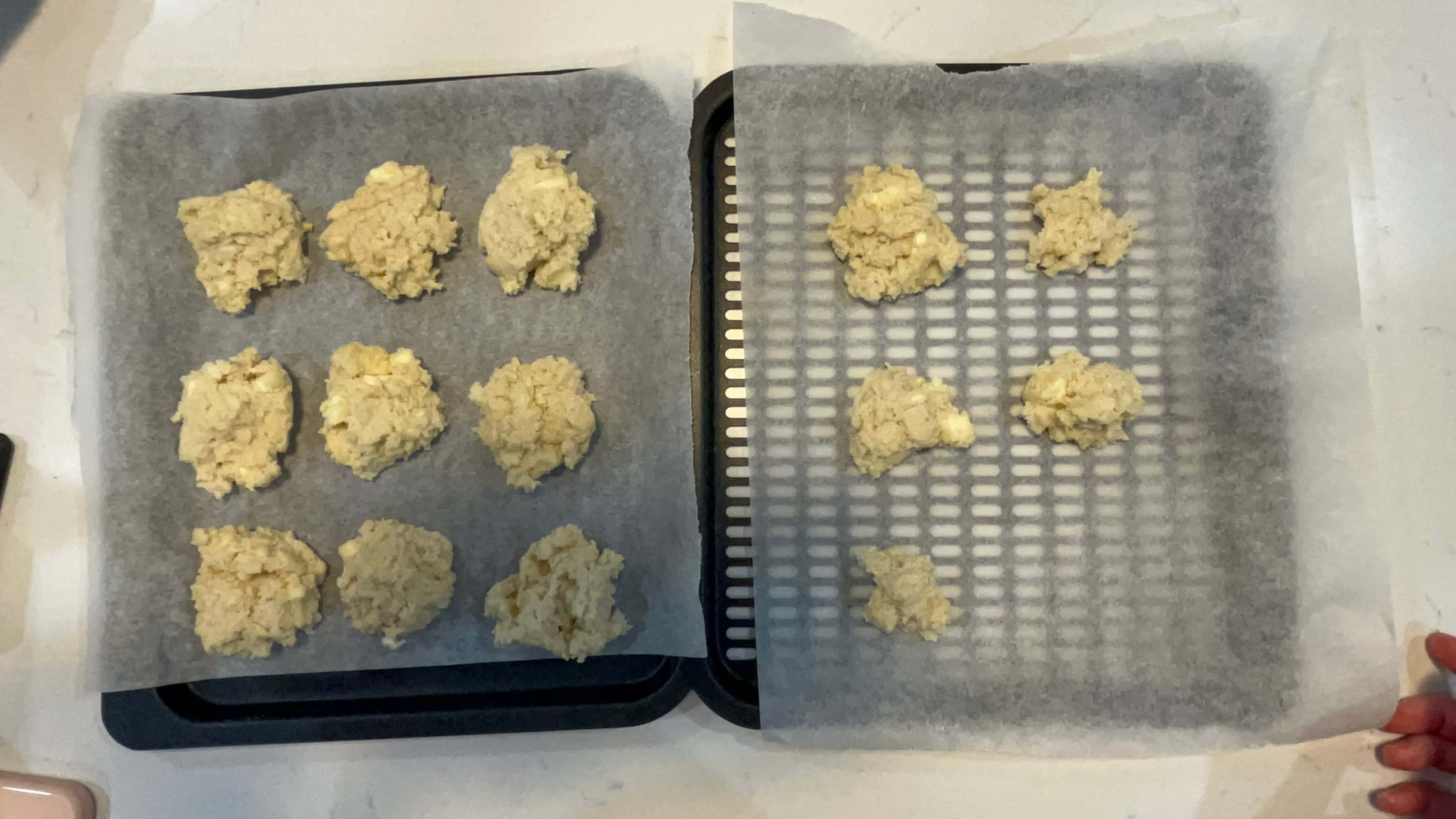 11. 냉장고에서 써내 반죽을 이렇게 나누어 오븐팬에 나누어줍니다.