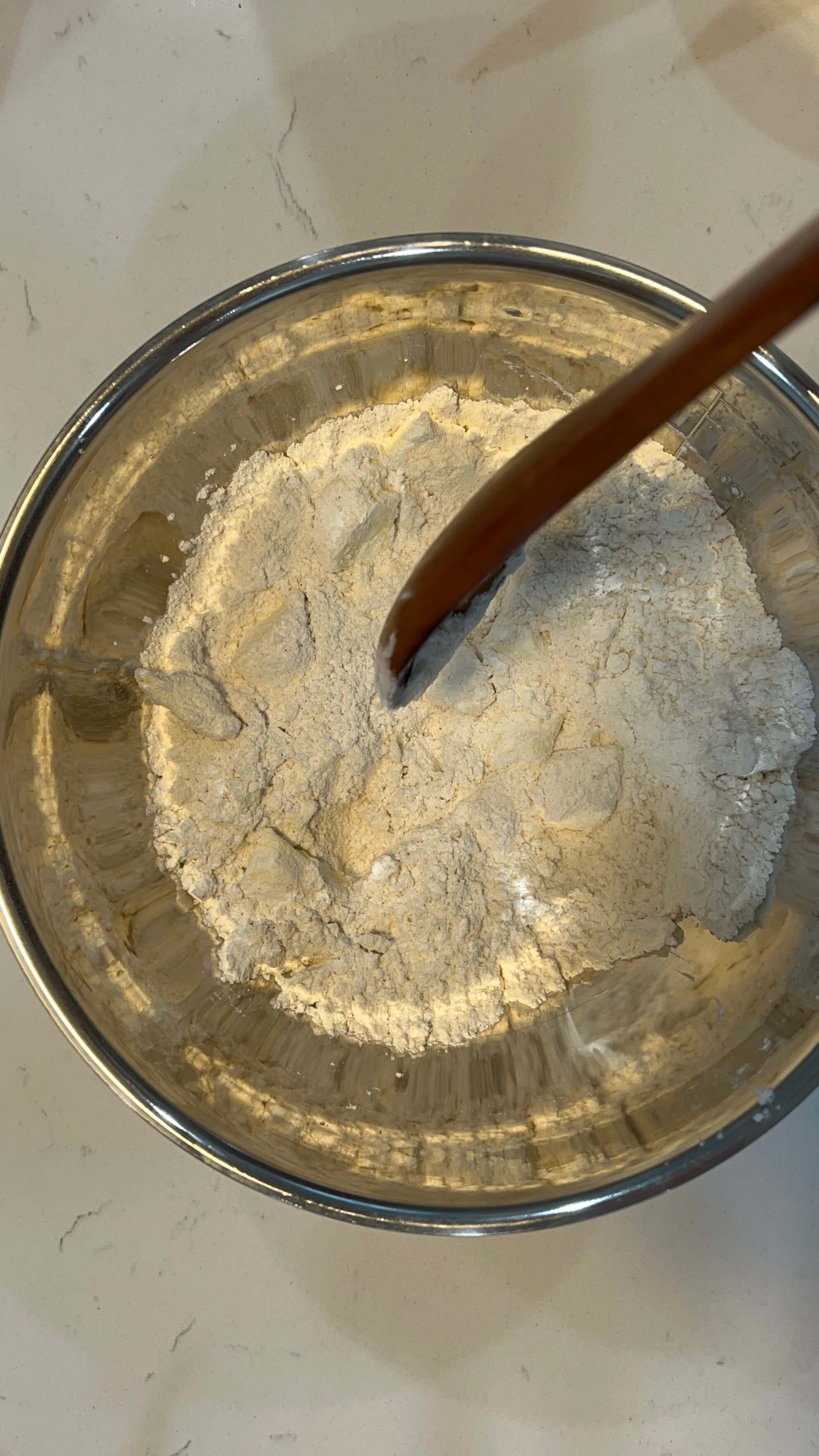 8. 버터를 쪼개듯이 가루와 잘 섞어줍니다.