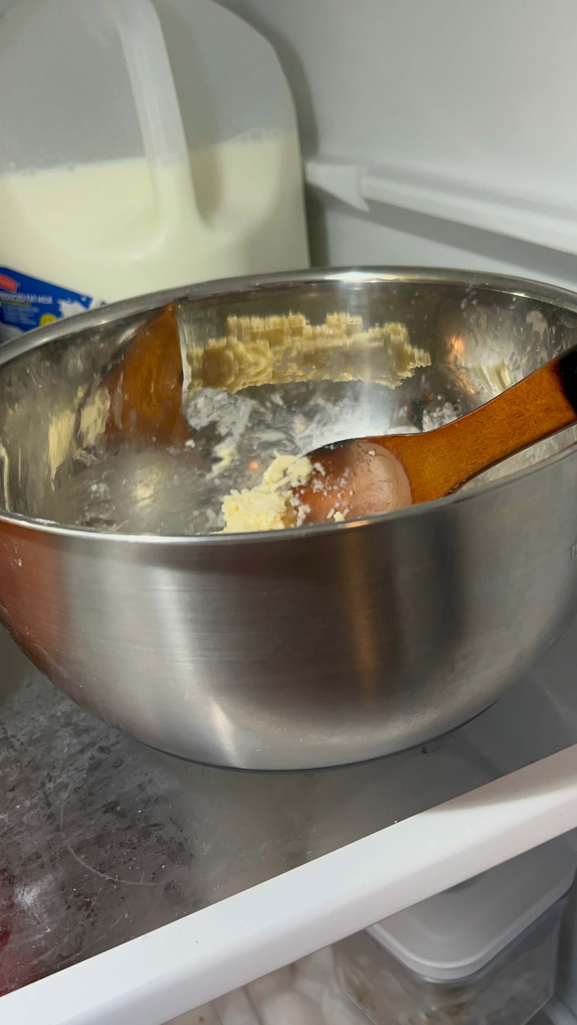 10. 계란을 넣고도 자르듯이 반죽을 해주고 냉장에 30분 이상 휴지시켜줍니다.