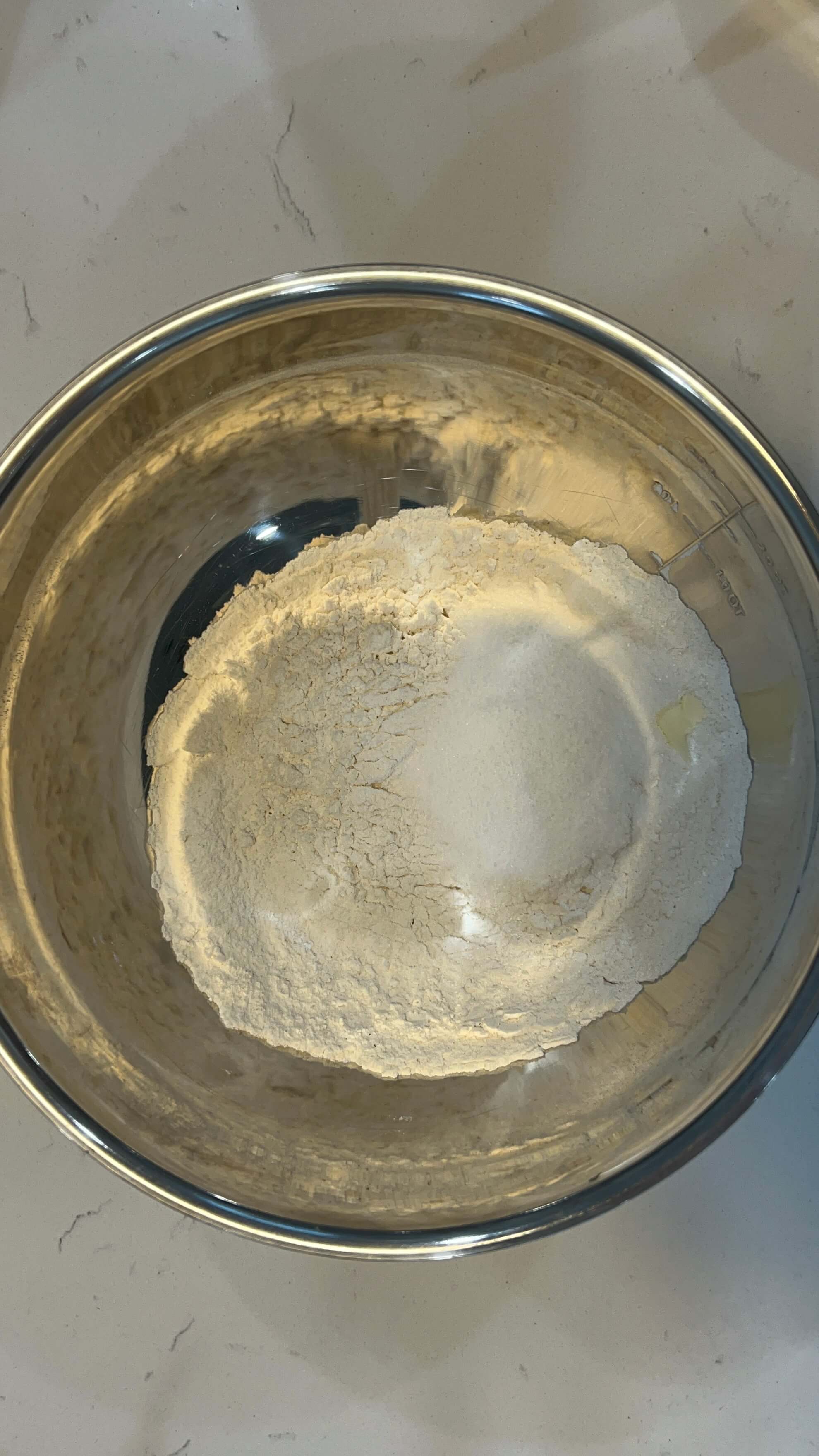 5. 체 친 가루에 소금, 설탕을 넣어줍니다.