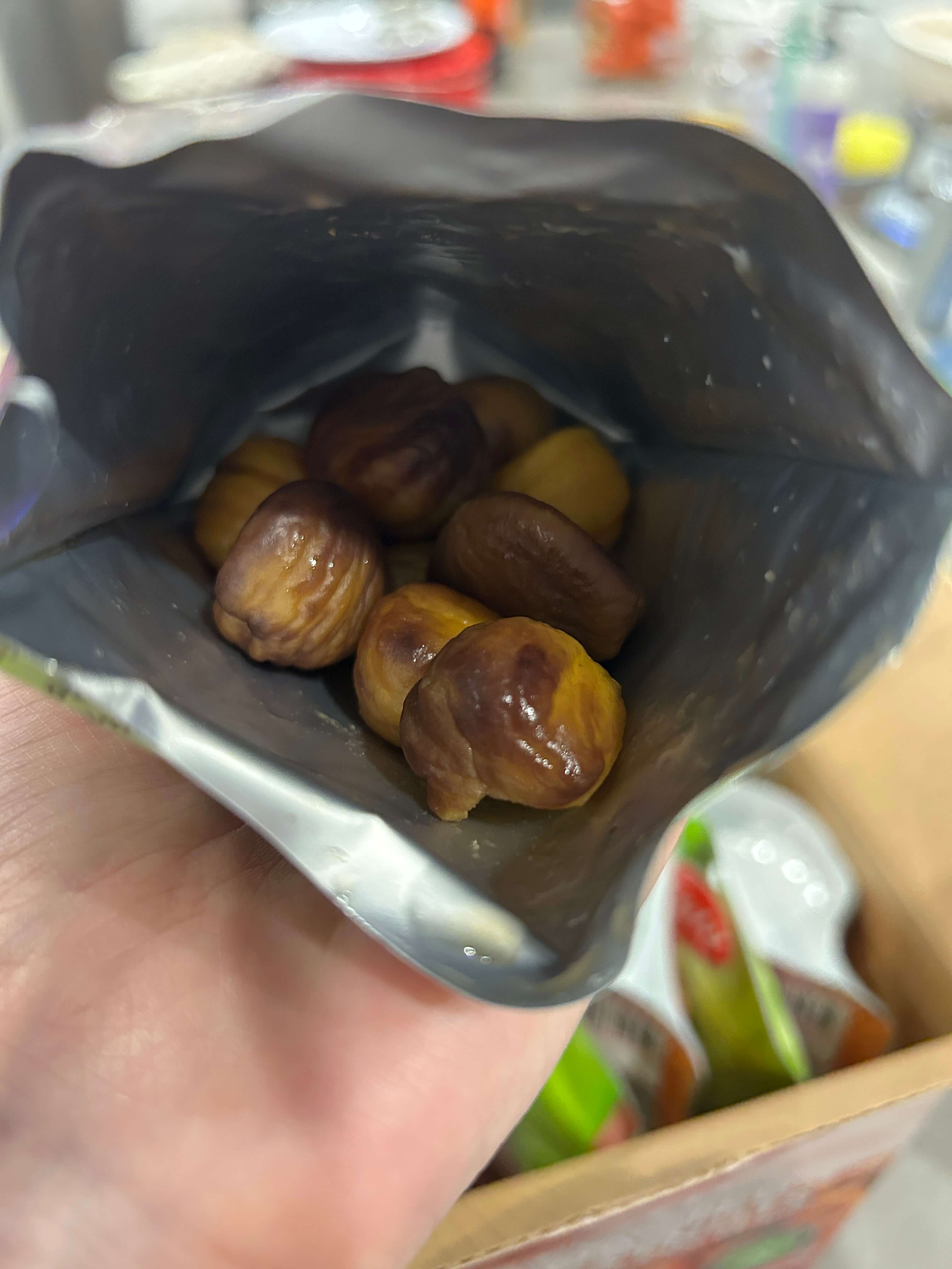 봉지 안에는 이 정도의 밤이 들어있습니다.