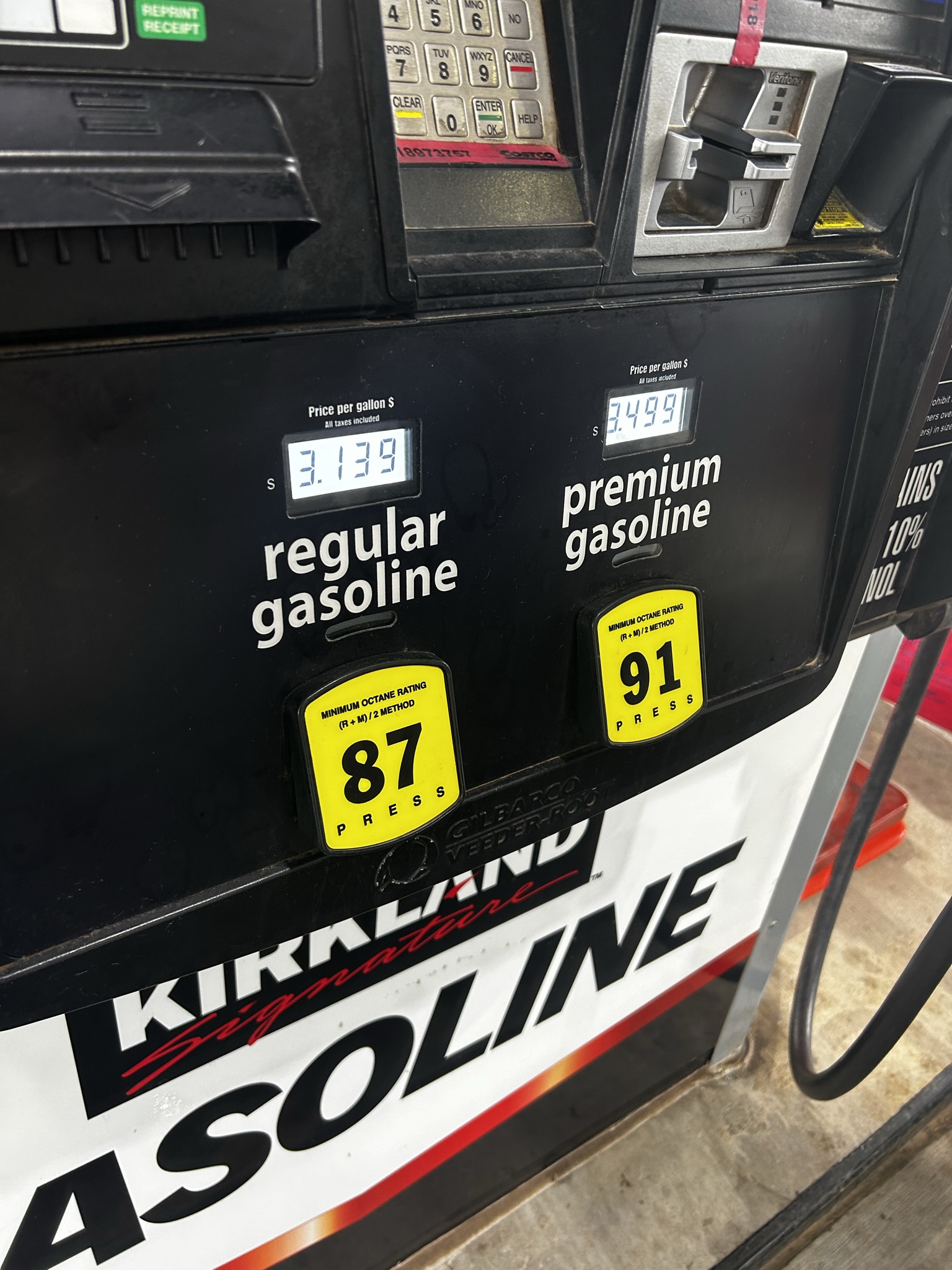 저희 처음 한 번만 premium gasoline으로 넣었고 그 뒤에는 regular gasoline으로 넣어주고 있습니다.