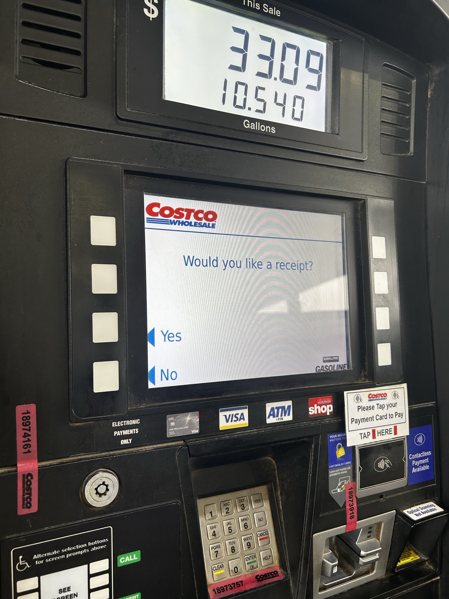 5. 다 채워지면 노즐을 워위치에 두고, 영수증이 필요한지에 대한 화면이 뜹니다.