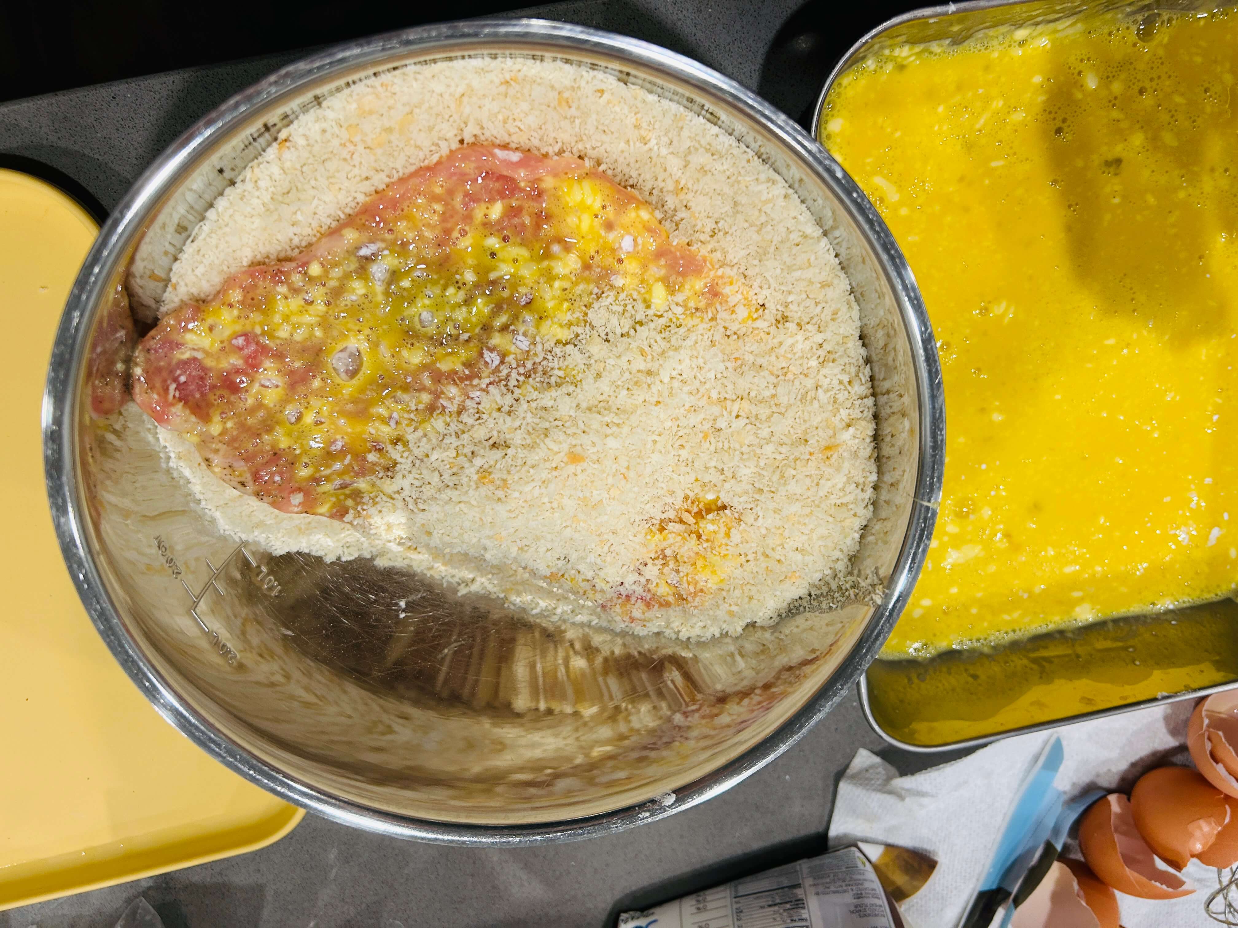 8. 빵가루는 큰 볼에 담아 준비해 줍니다.