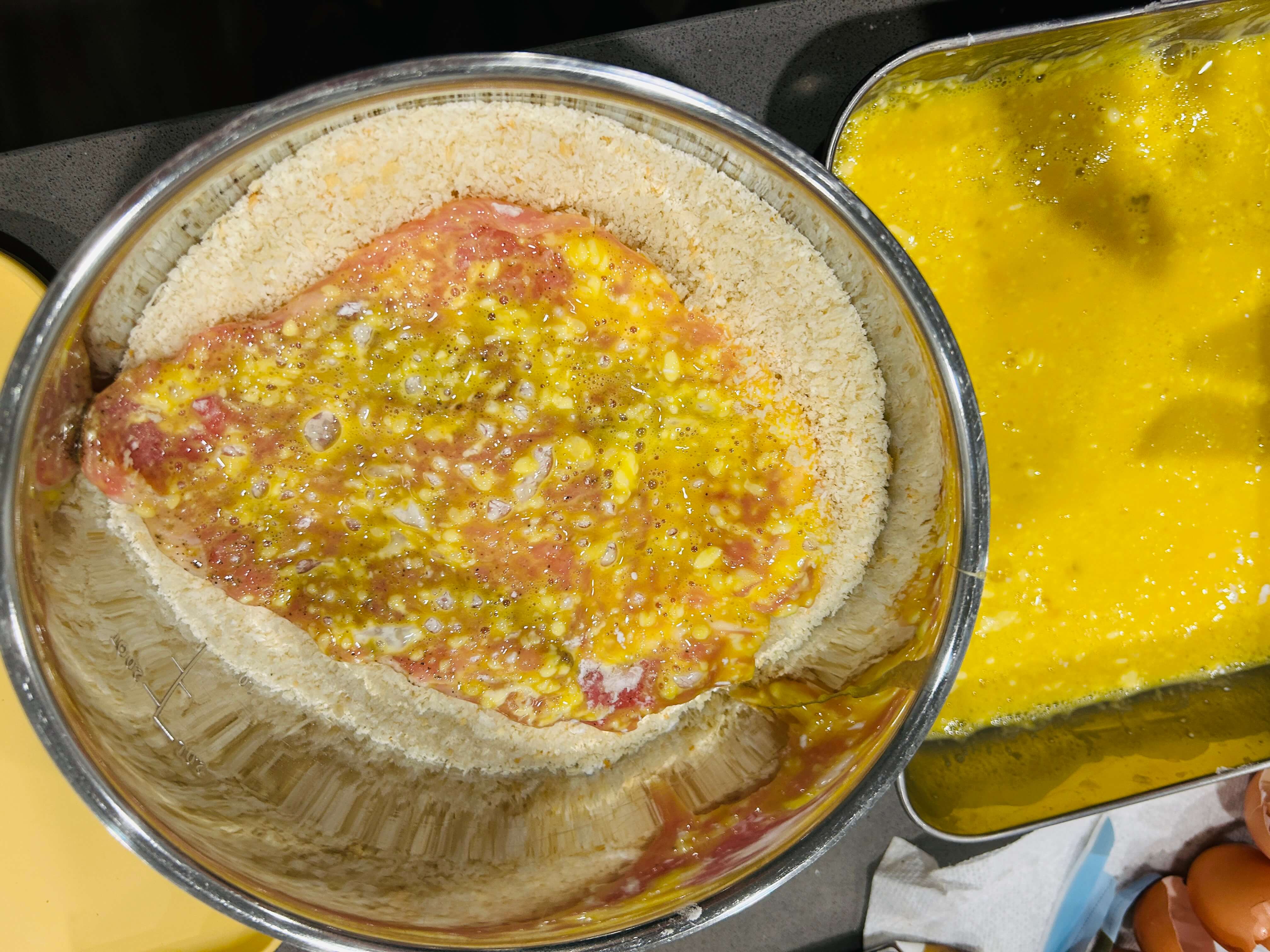 8. 빵가루는 큰 볼에 담아 준비해 줍니다.