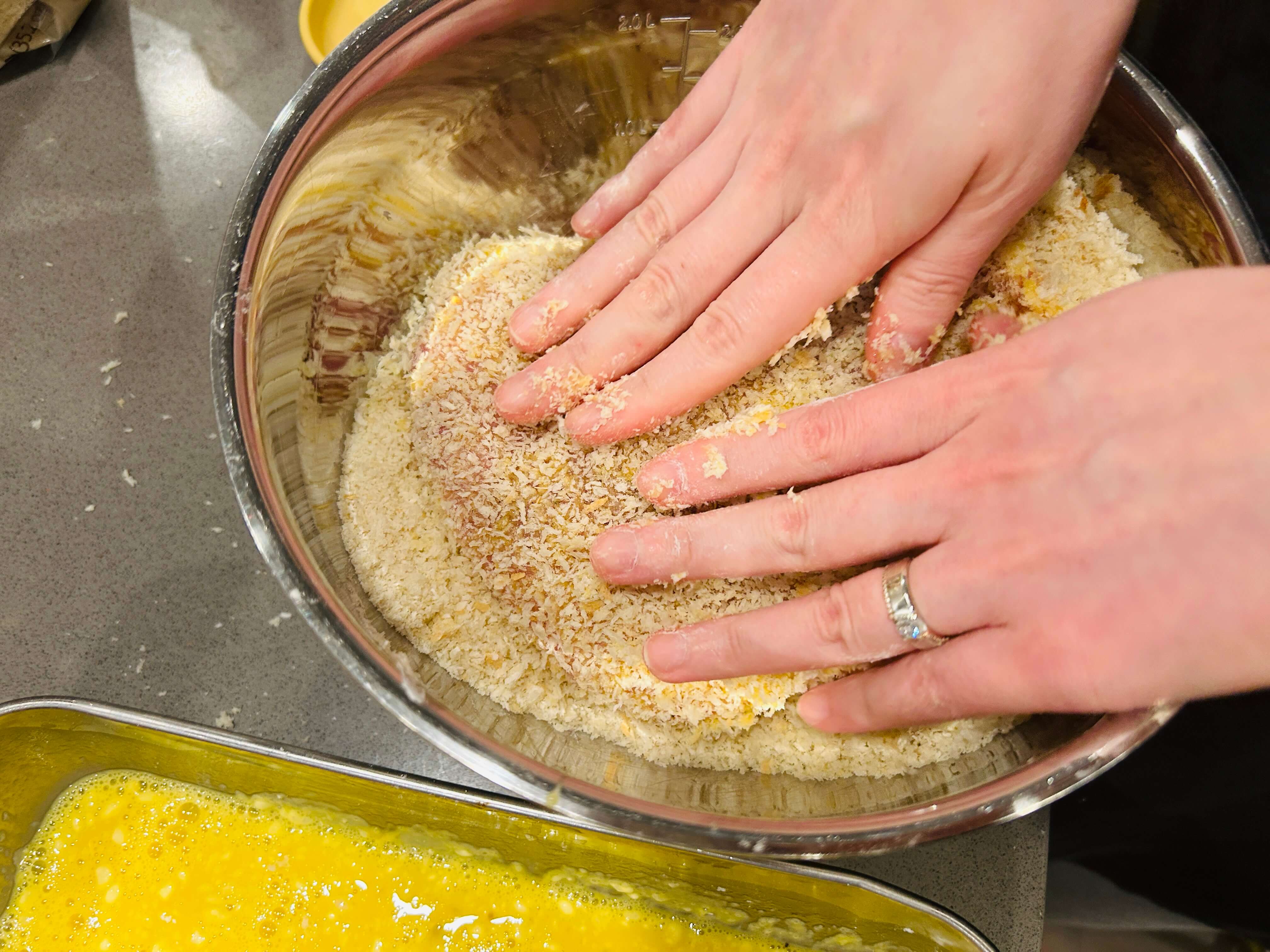 12. 온 힘으로 꾹꾹 눌러서 빵가루가 잘 붙게 합니다.