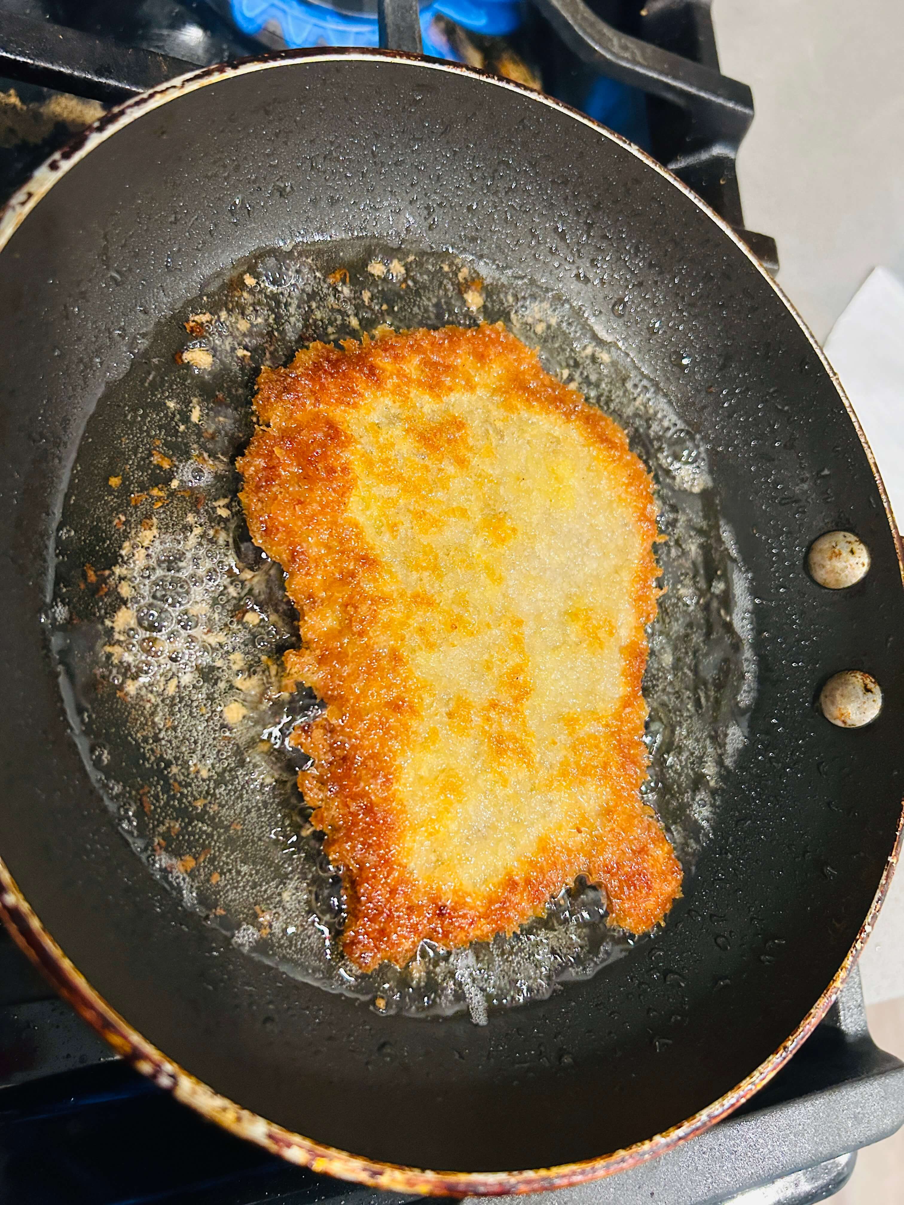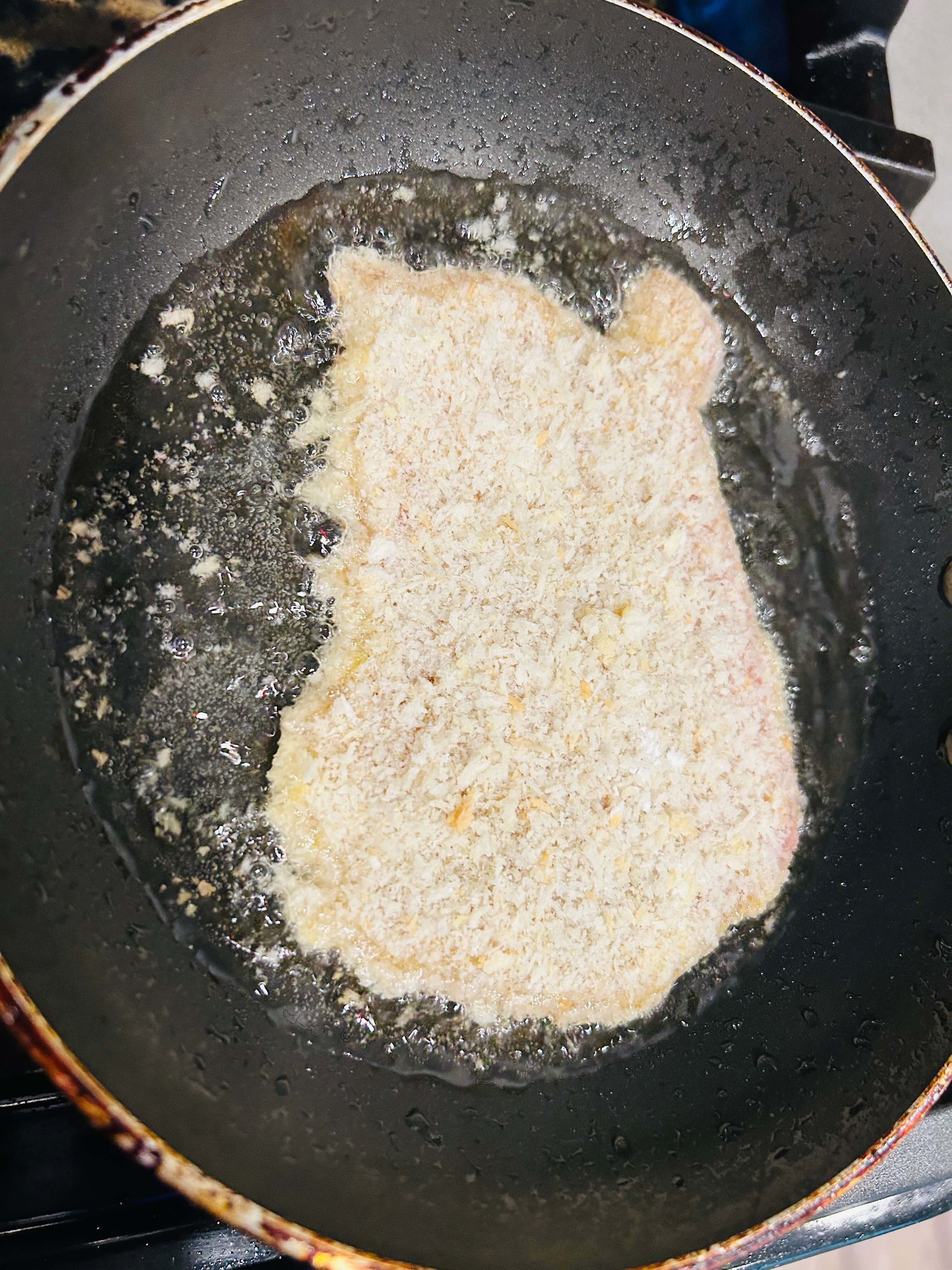 16. 돈가스를 앞뒤로 바삭하게 튀겨줍니다.
