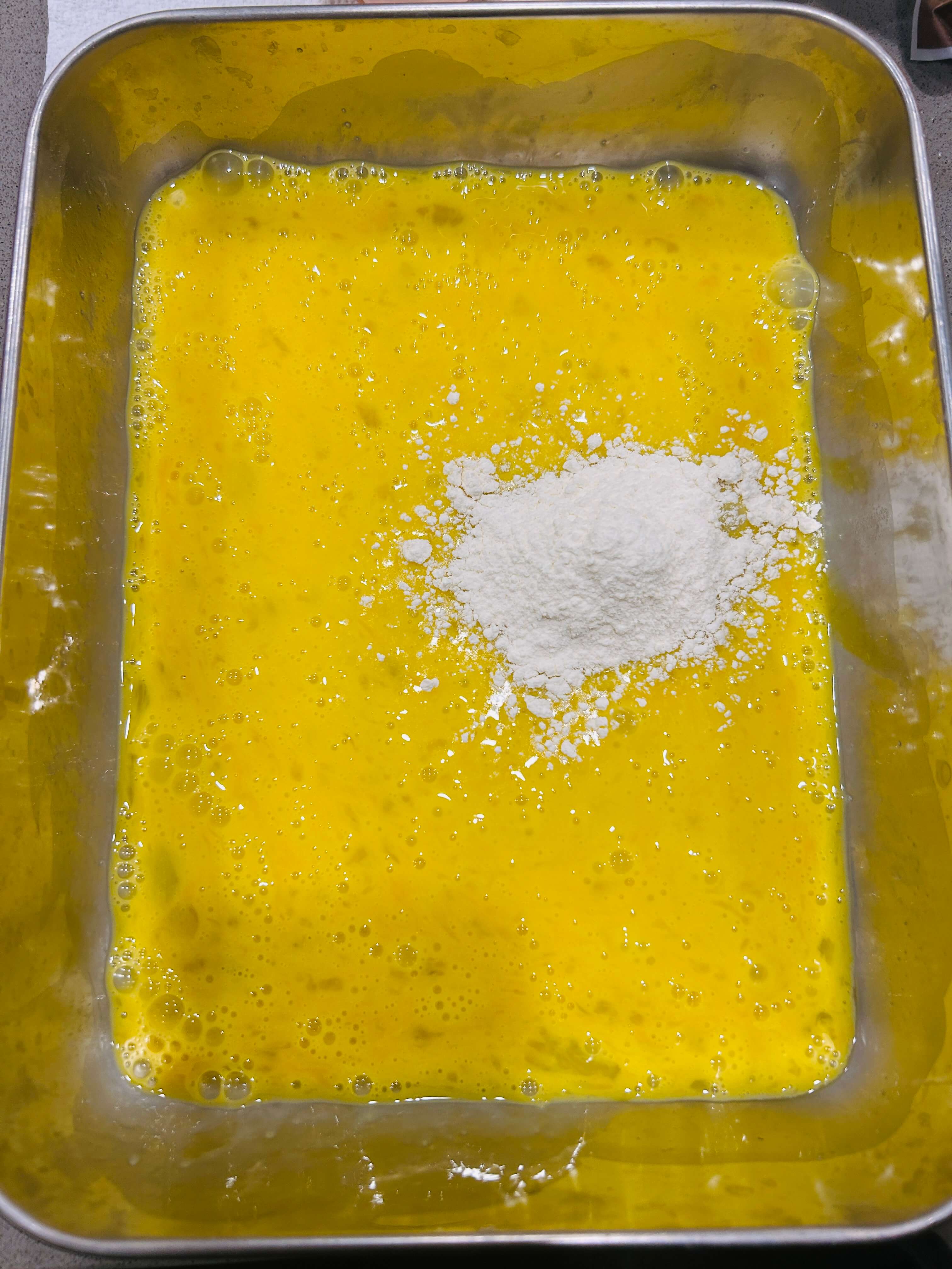 7. 계란물에 감자전분 한 숟갈을 넣어 줍니다.
