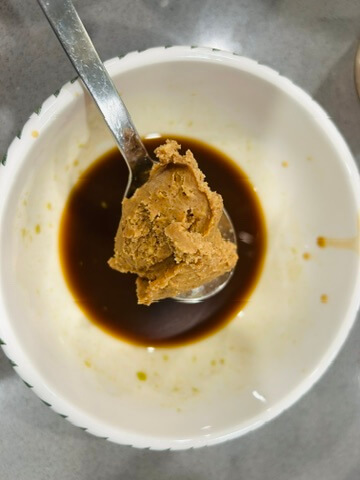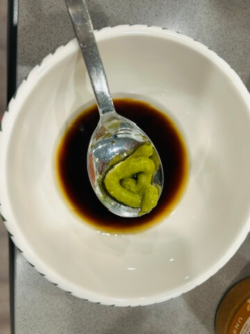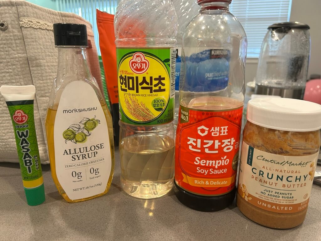 4. 냉채족발 소스로 와사비, 알룰로스, 식초, 간장, 땅콩버터를 준비해 줍니다.