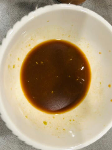 5. 설탕 2, 식초 3, 간장 3, 연겨자 2 숟갈을 넣고 잘 섞어줍니다.