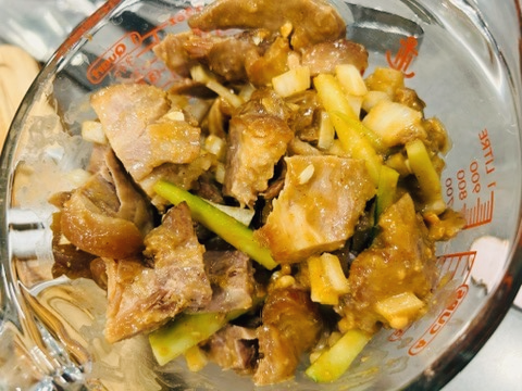 3. 익힌 족발을 한입크기로 잘라줍니다.