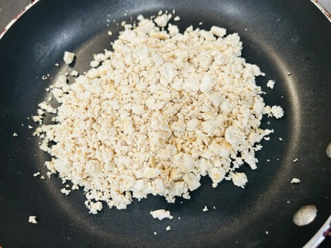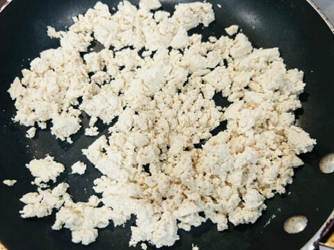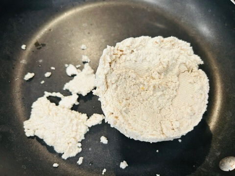 2. 물기 짠 두부를 프라이팬에서 바짝 볶아 수분을 제거해 줍니다.