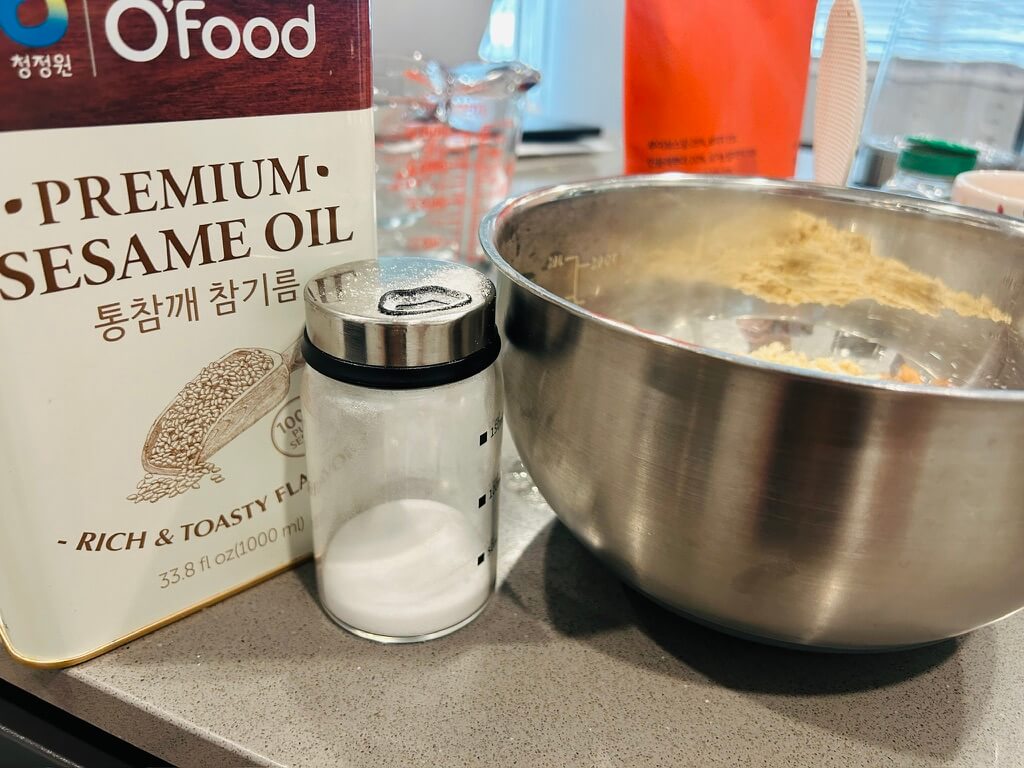 5. 소금과 참기름을 밑간을 해 잘 섞어줍니다.