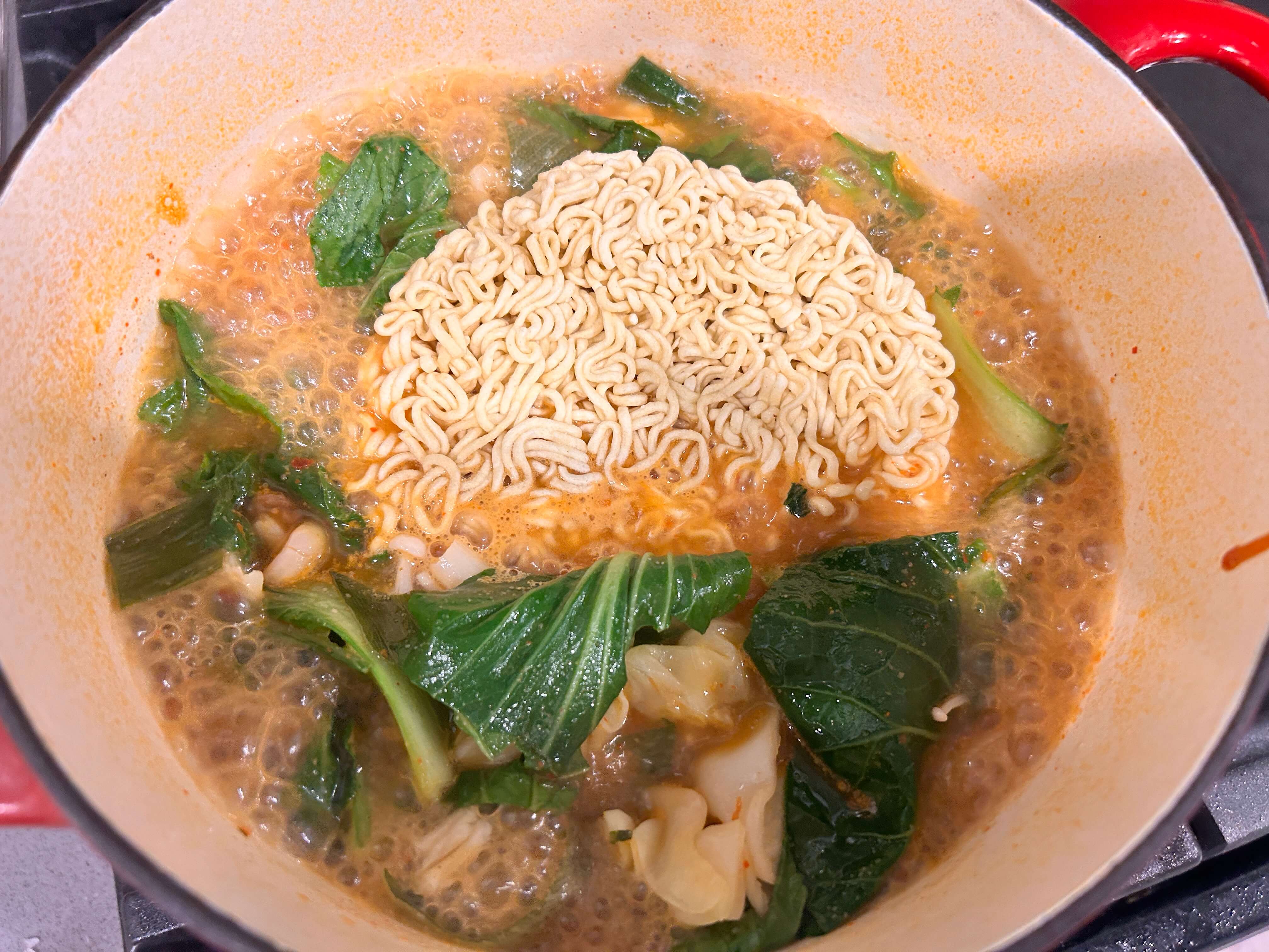 6. 라면 사리를 먼저 넣어줍니다.