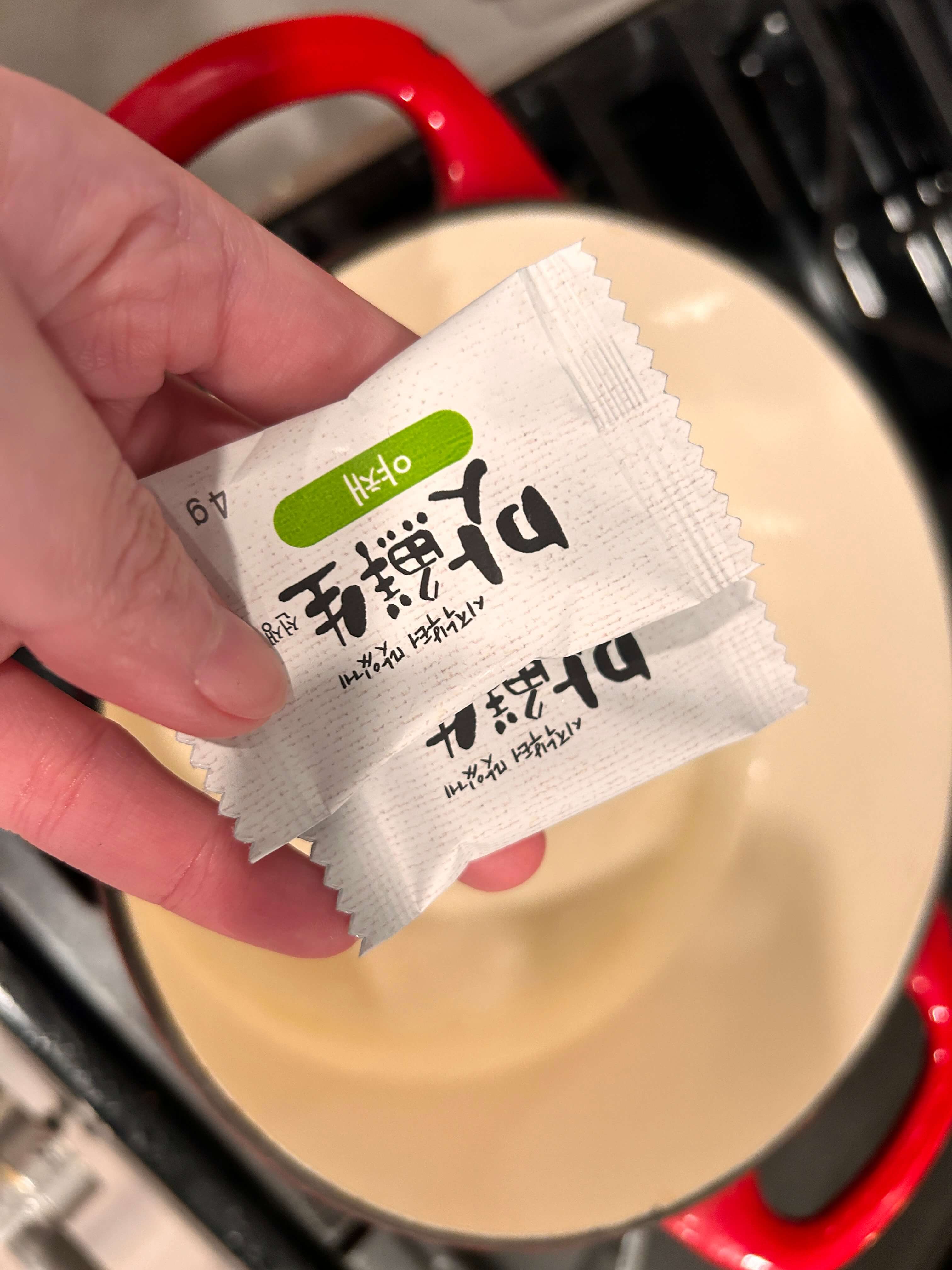 2. 냄비에 물을 준비하고 육수 한 알(야채)을 두 개 넣어줍니다.