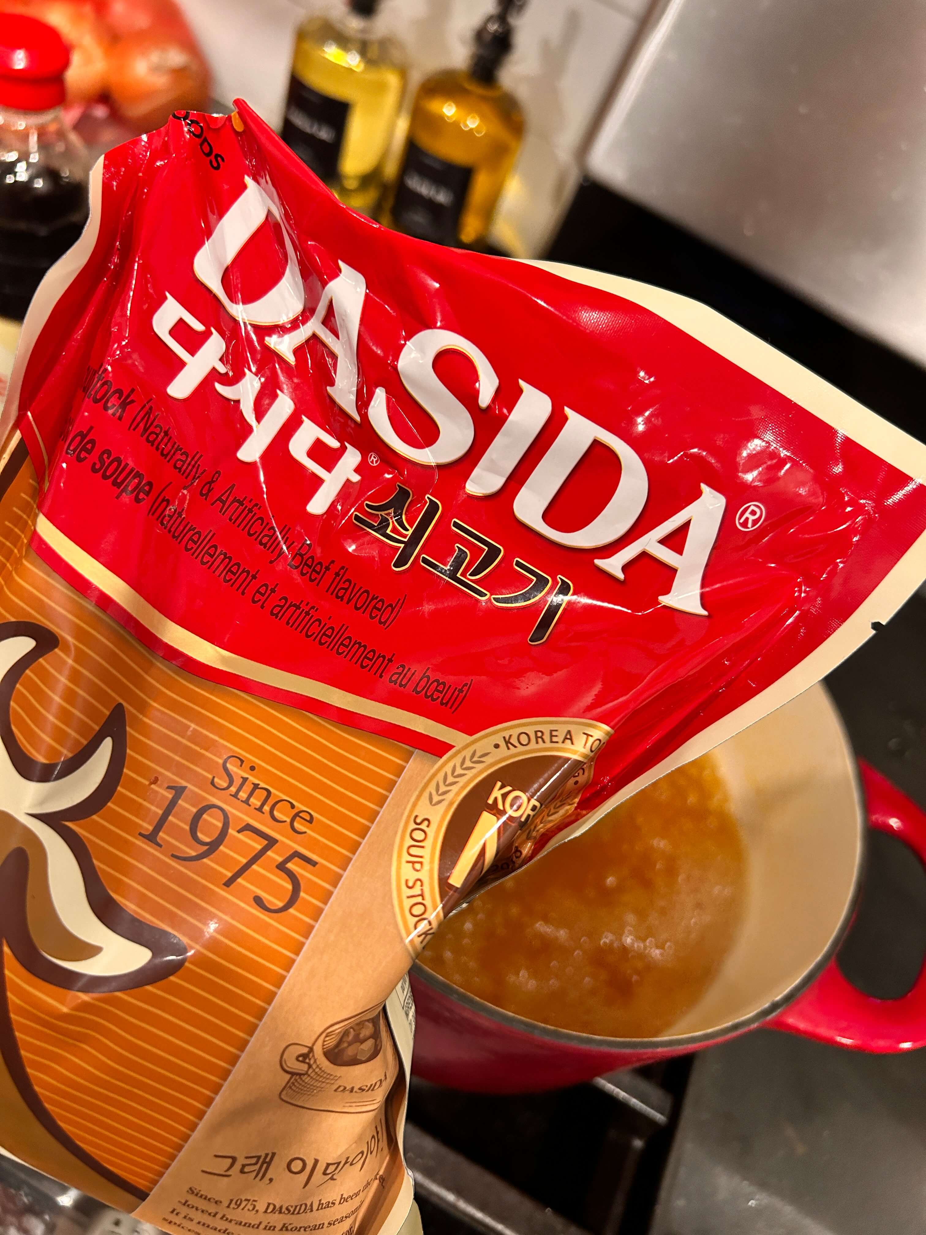 이렇게 넣어 끓여주시고 간이 잘 맞지 않는 다면 다시다를 조금 더 넣어 간을 맞추어 줍니다.