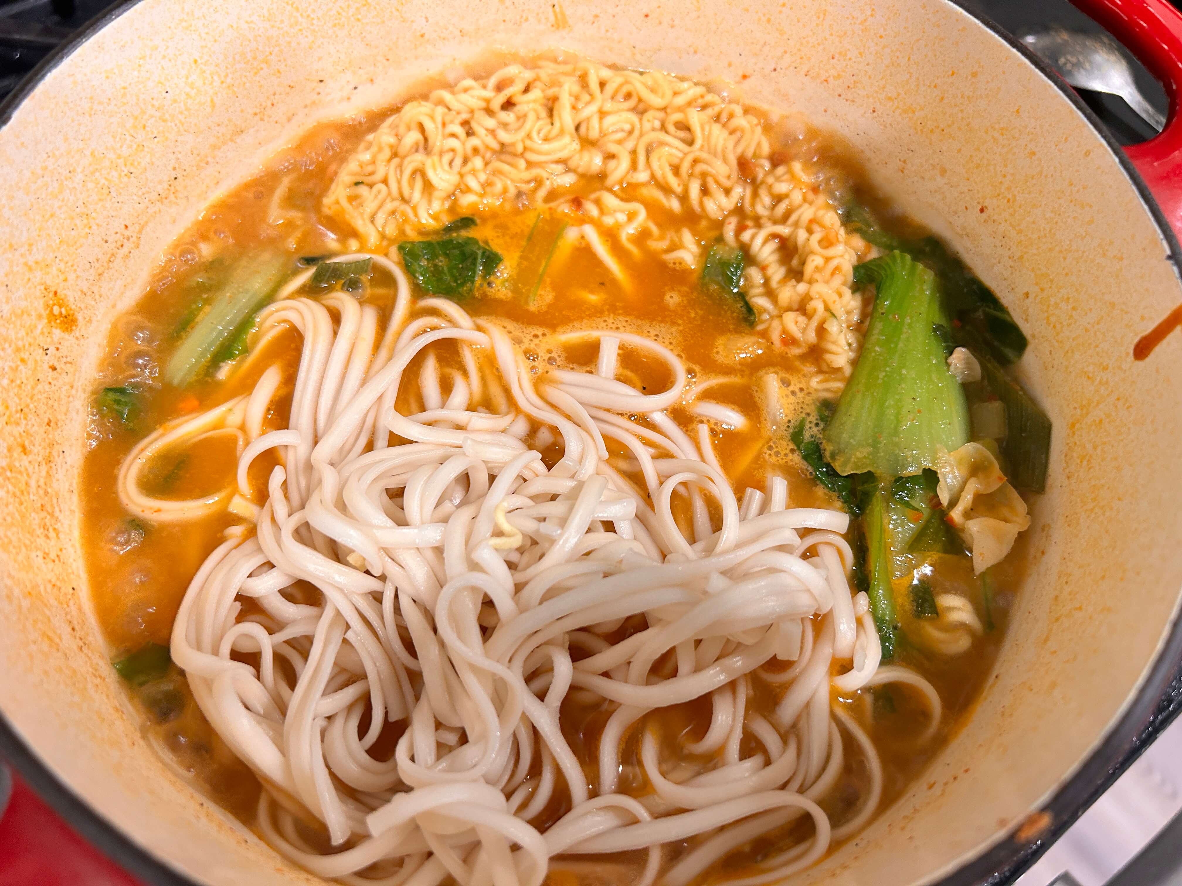 8. 라면을 넣은 지 2분 정도 뒤에 우동사리를 넣어줍니다.