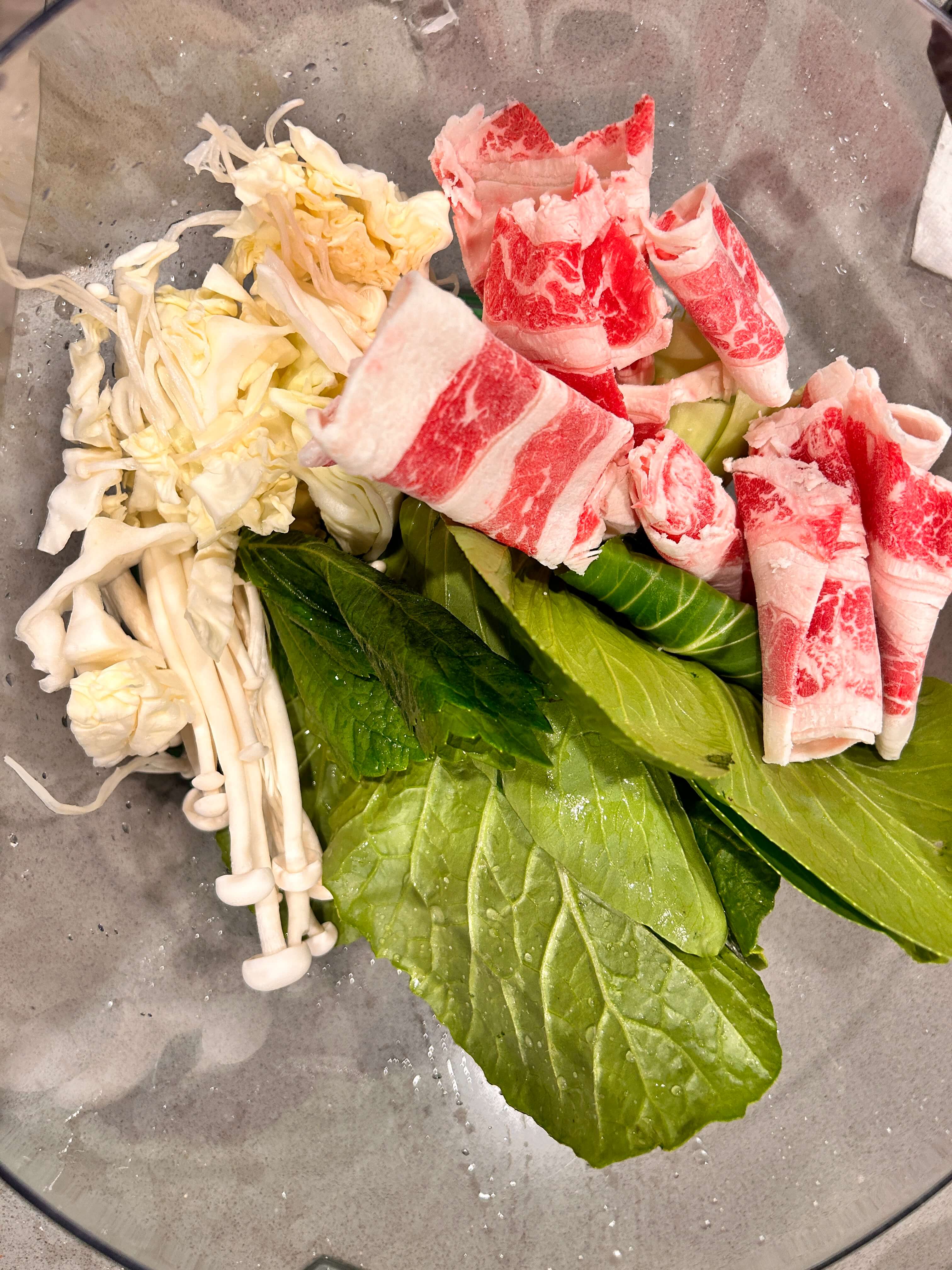 각종 토핑 (청경채, 배추, 버섯, 양배추, 차돌박이)