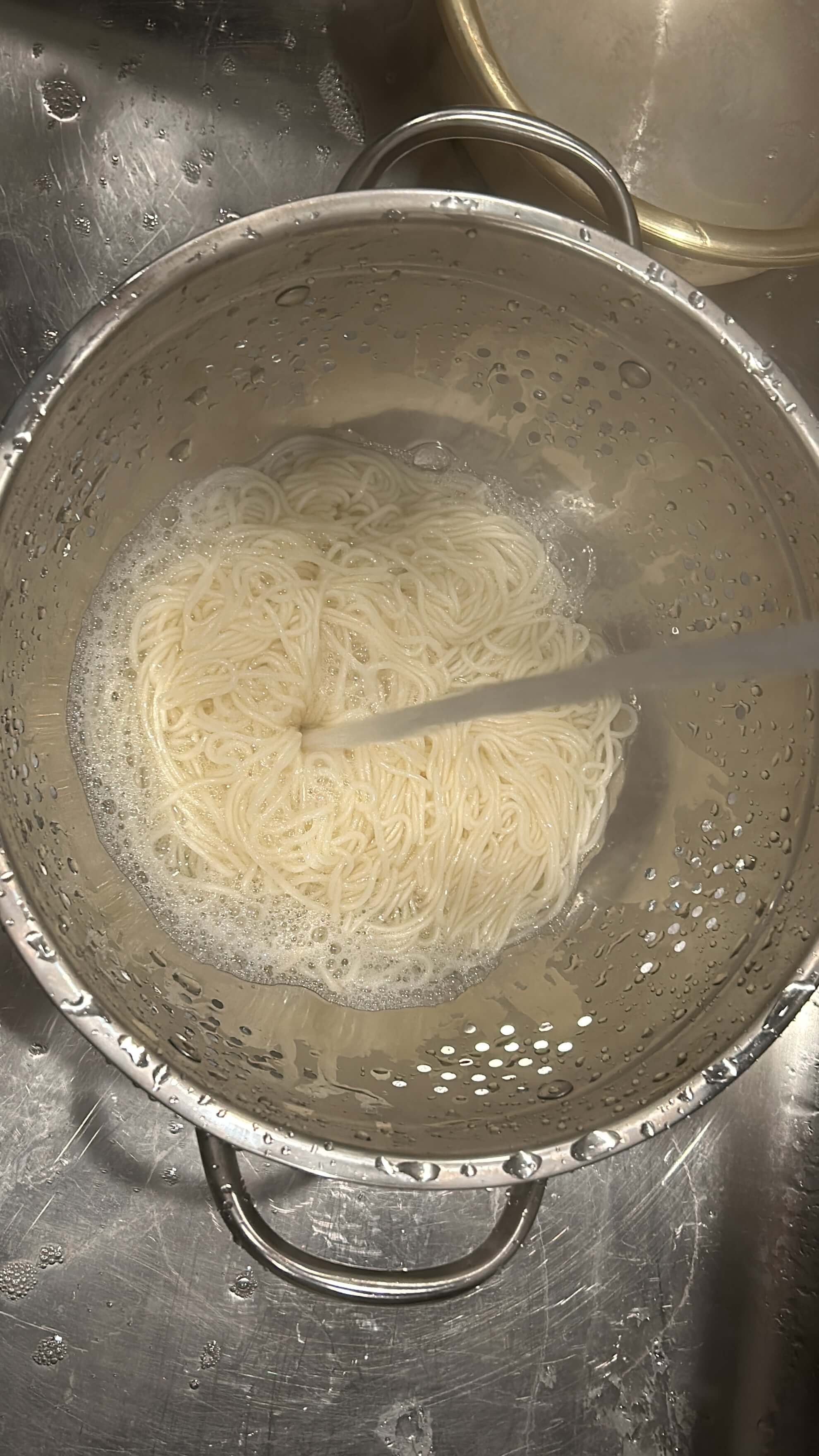 2. 삶은 국수는 찬물에 씻어 물기를 빼 준비해 줍니다.