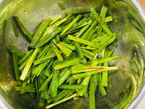 6. 부추무침은 훈제오리 (그 외에 다른 고기들)와 함께 곁들여 줍니다.