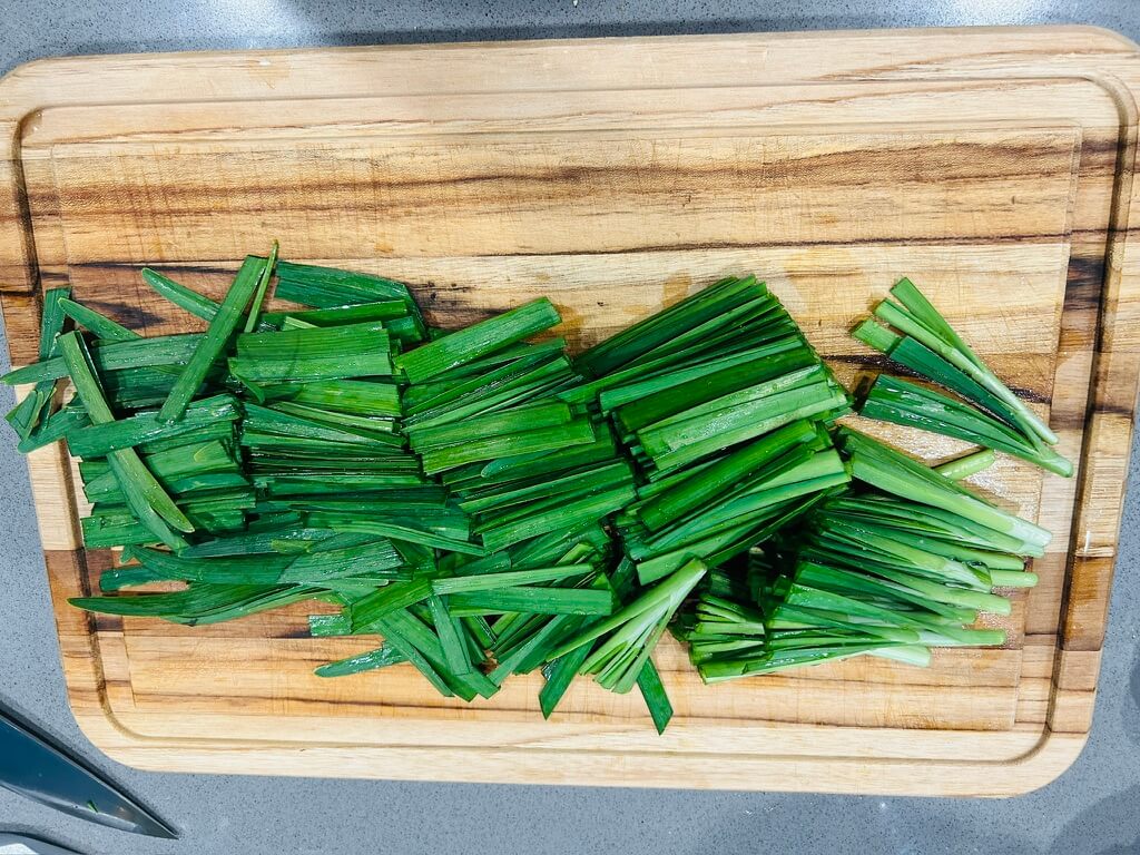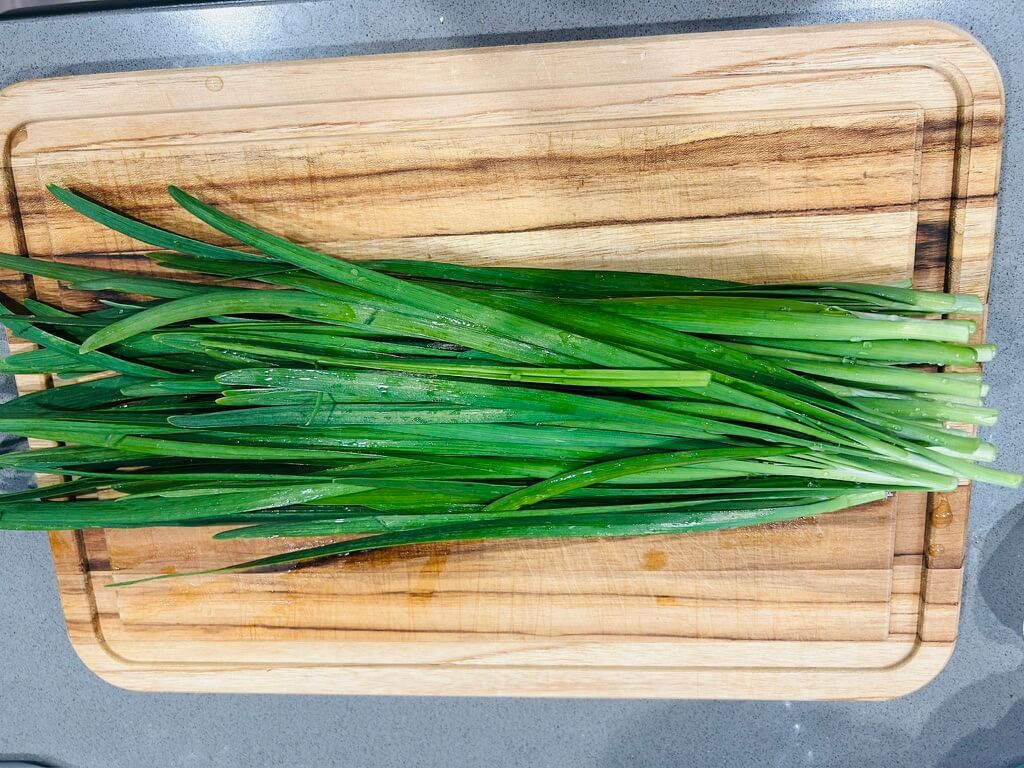 1. 부추는 흐르는 물에 깨끗이 씻어 손질해 준비해 줍니다.