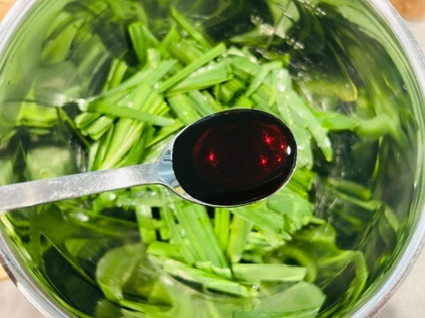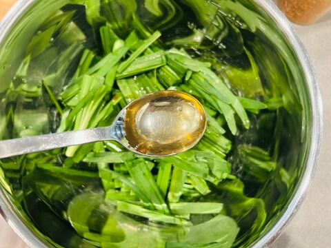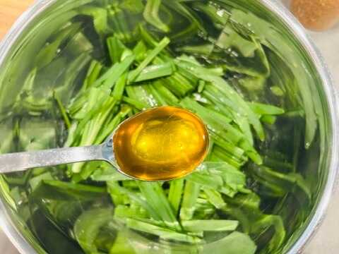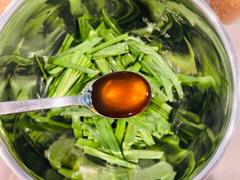 4. 진강장1 숟갈, 국간장1 숟갈, 매실청 1 숟갈, 식초1 숟갈, 고춧가루1 숟갈, 들기름들기름 1 숟갈을 넣어 잘 버무려 줍니다.