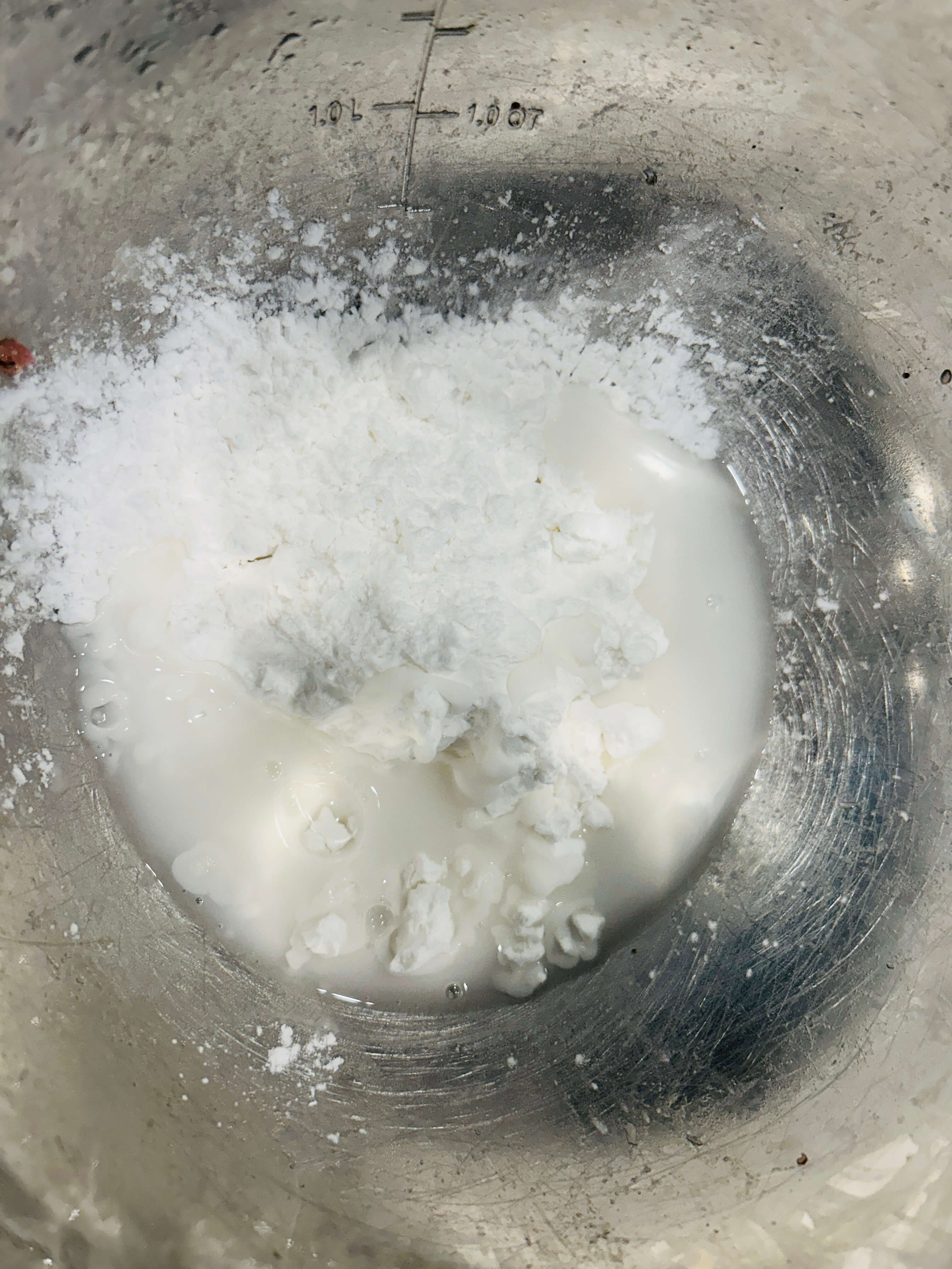 5. 전분가루를 물에 풀어 묽은 반죽을 만들어 줍니다.