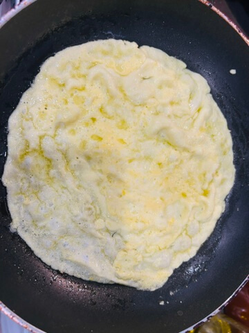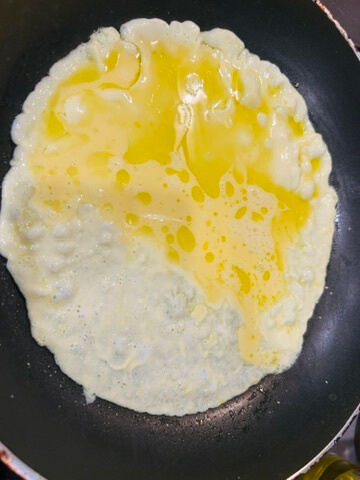 4. 프라이팬에 계란물을 얇게 부어 지단을 만들어 줍니다.